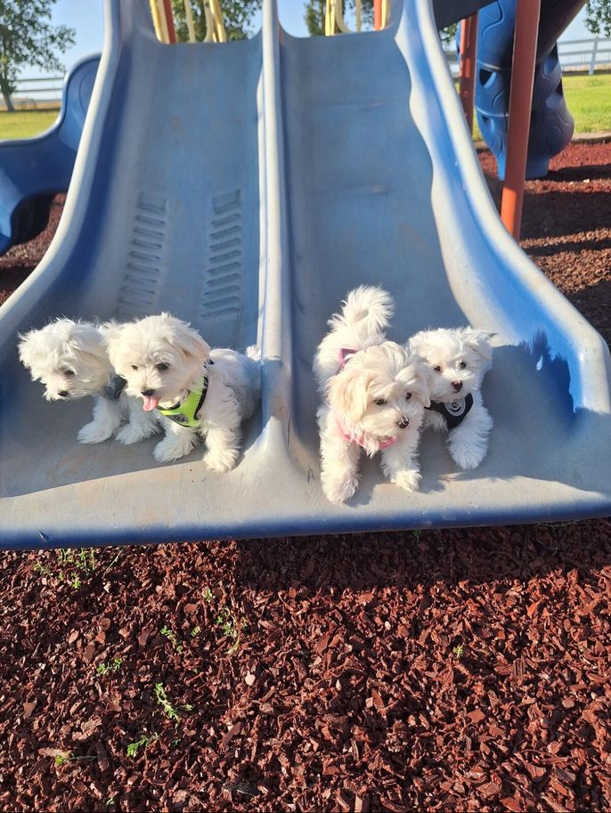 Our puppies include white, white and lemon, and white and tan. Colors will vary depending on the parent dogs.