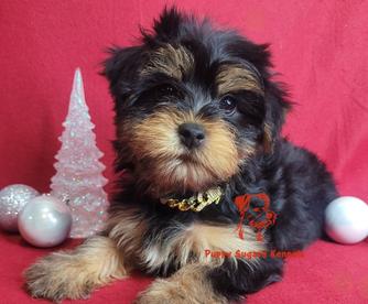 Our Miniature Schnauzer puppies include wheaten, white, parti, liver, black and silver, black, and salt and pepper. Yorkshire Terrier puppies include parti and black and tan. Colors will vary depending on the parent dogs.