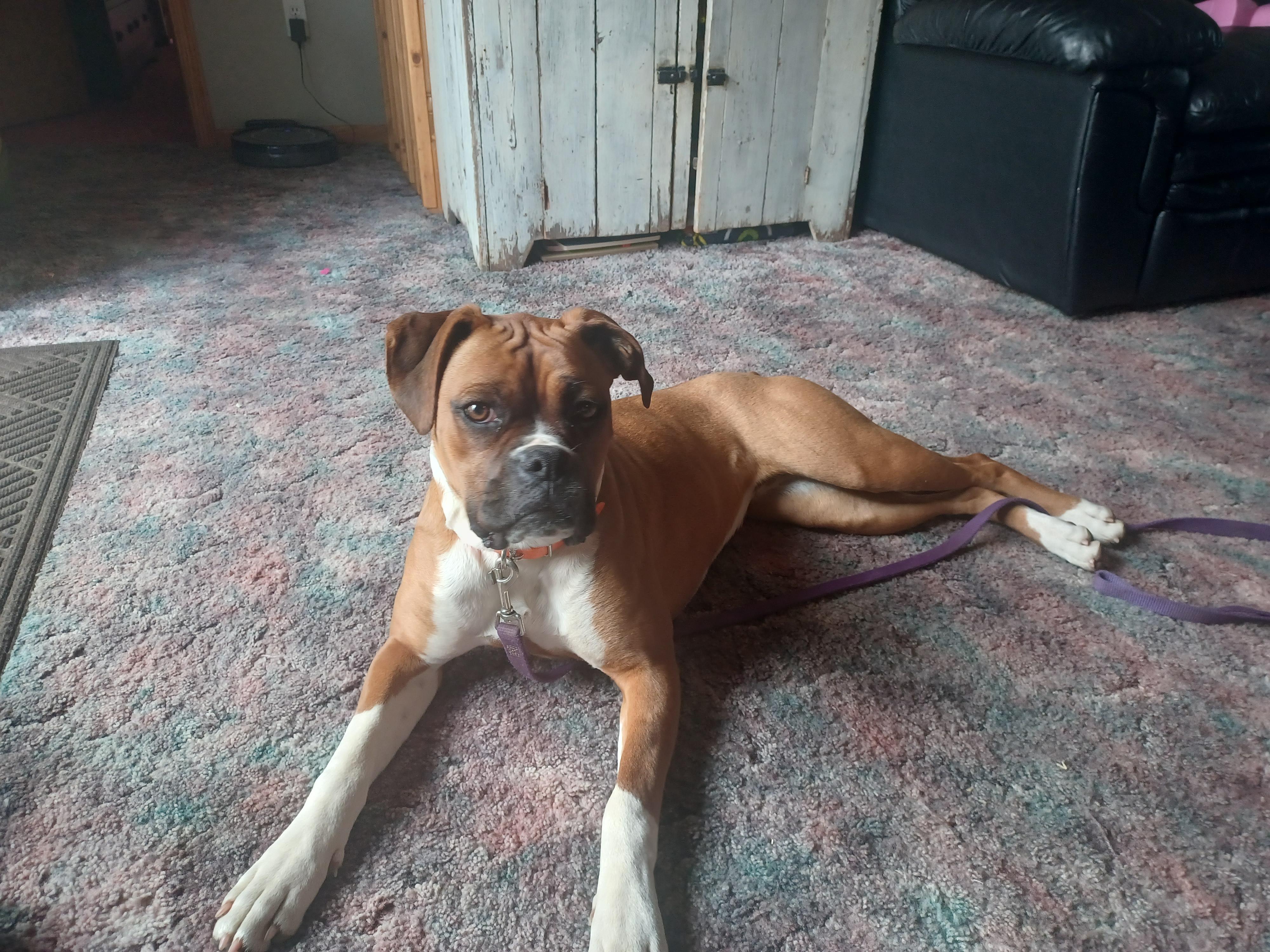 Loves her owners! would go to any length to protect our children. She's a bit wary of strangers but once she gets to know you she will like you! Shes is a total goof with the family. loves to play catch and laze around where everyone else is.