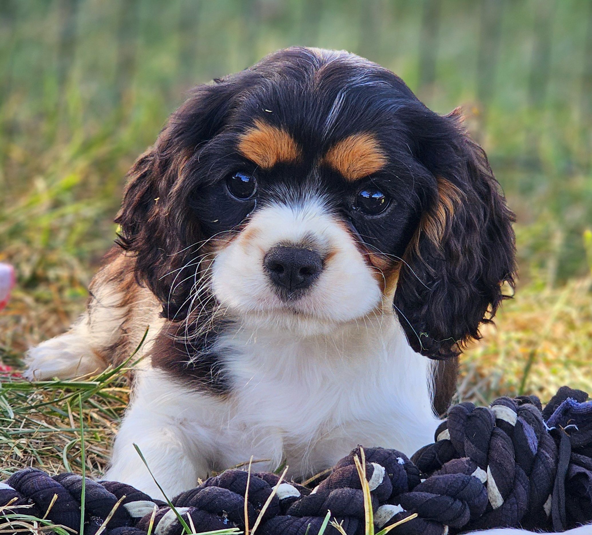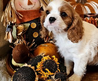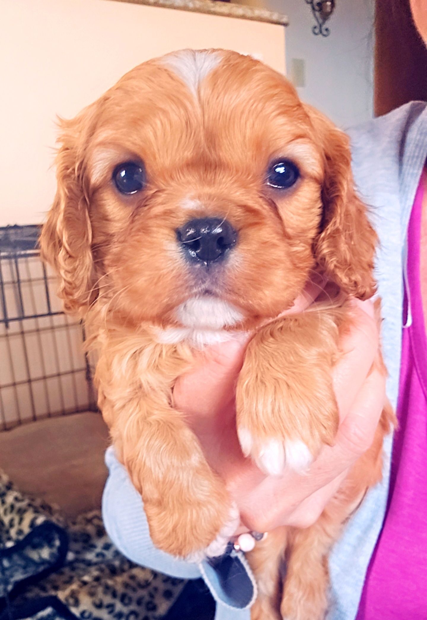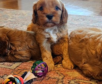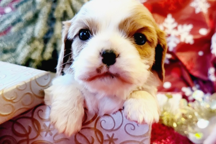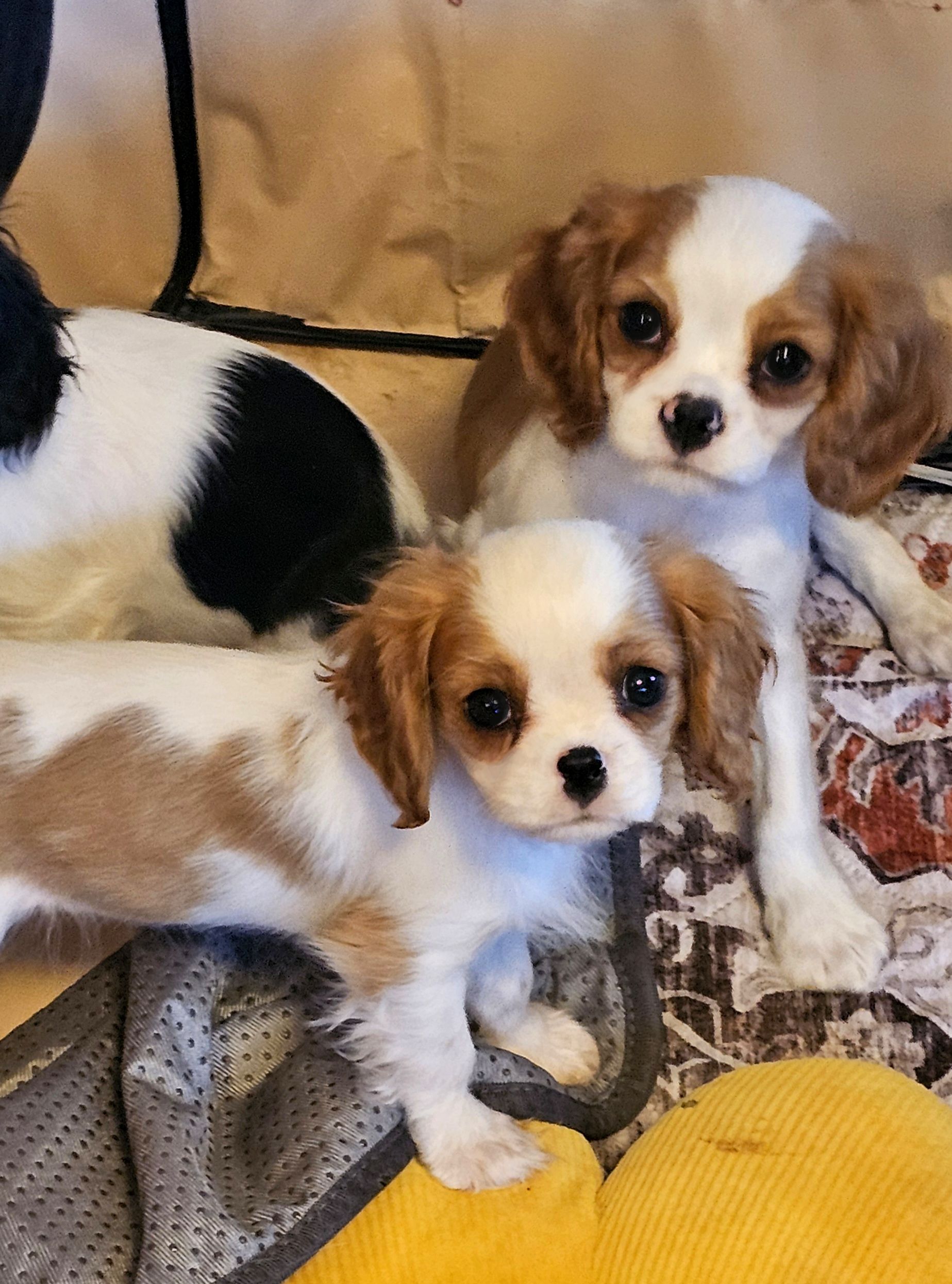 Our Cavalier King Charles Spaniel puppies include blenheim, ruby, tri-color, and black and tan. Cavapoo puppies include cream, red, blenheim, and apricot. Colors will vary depending on the parent dogs.