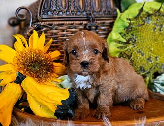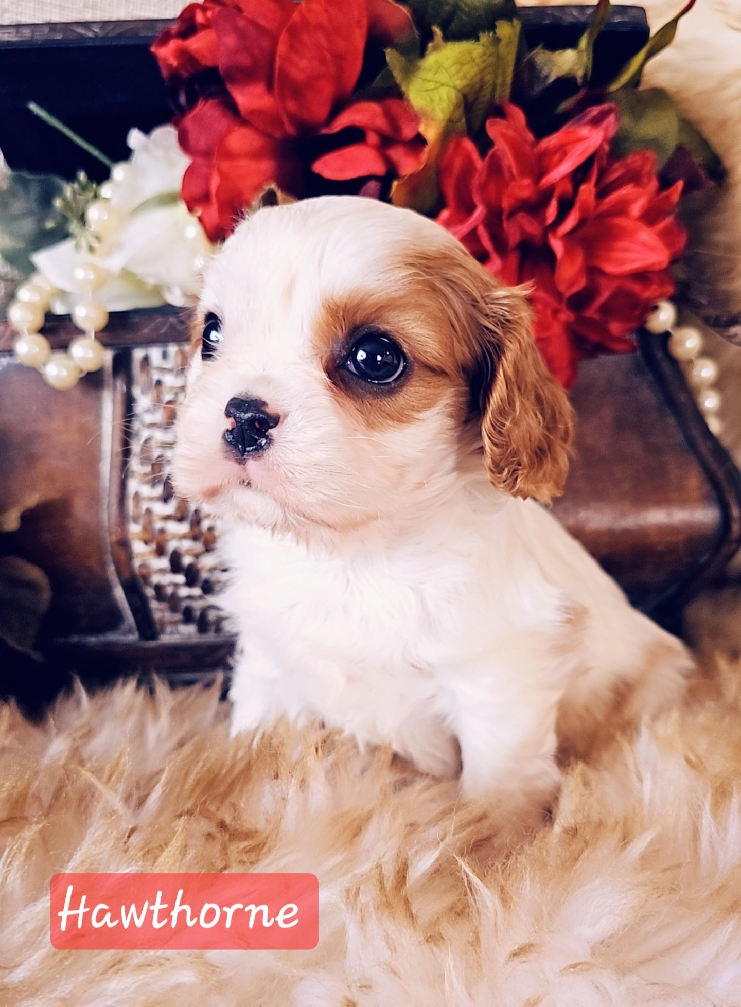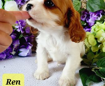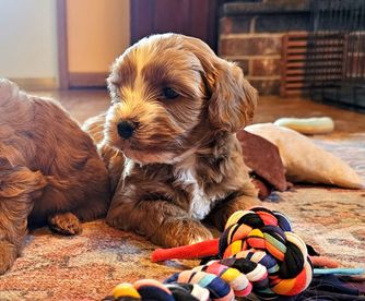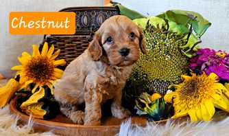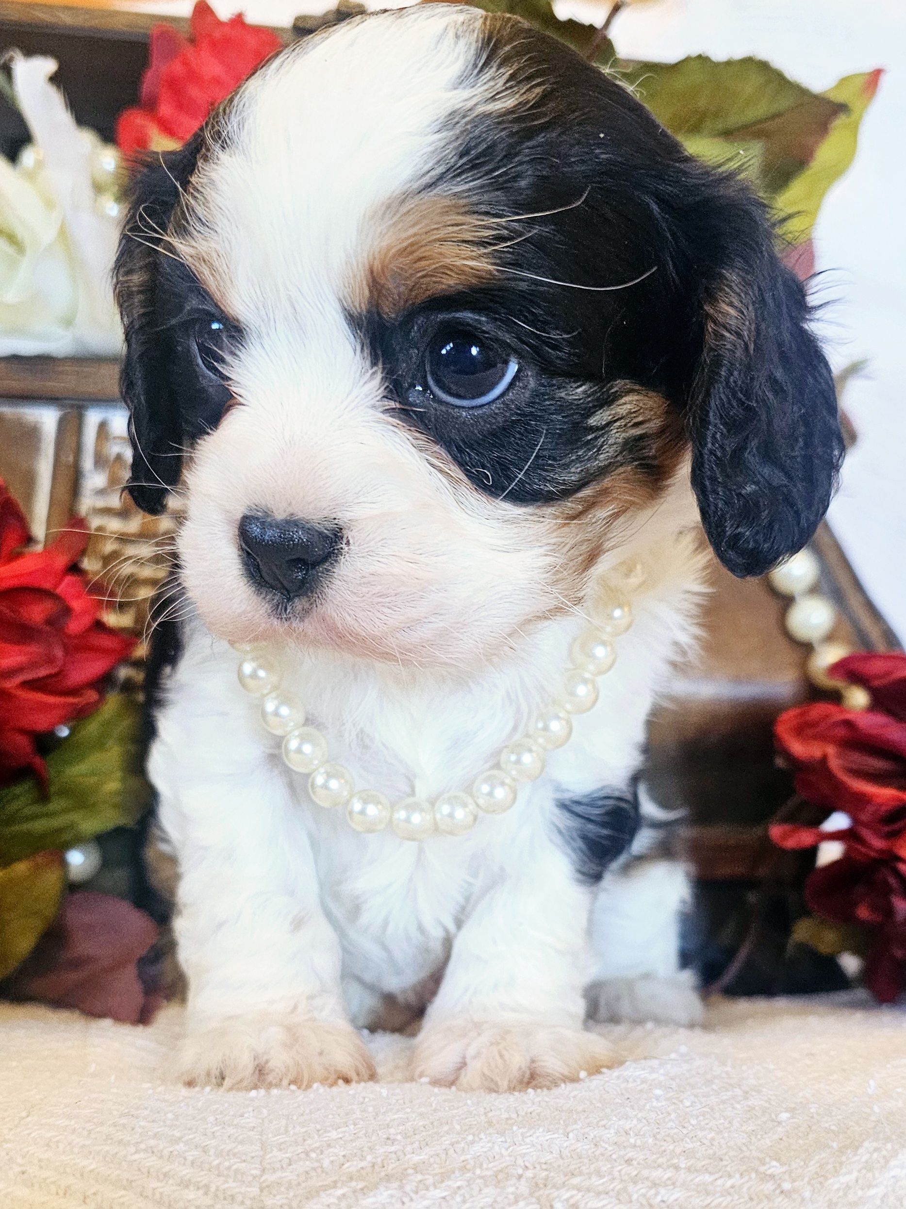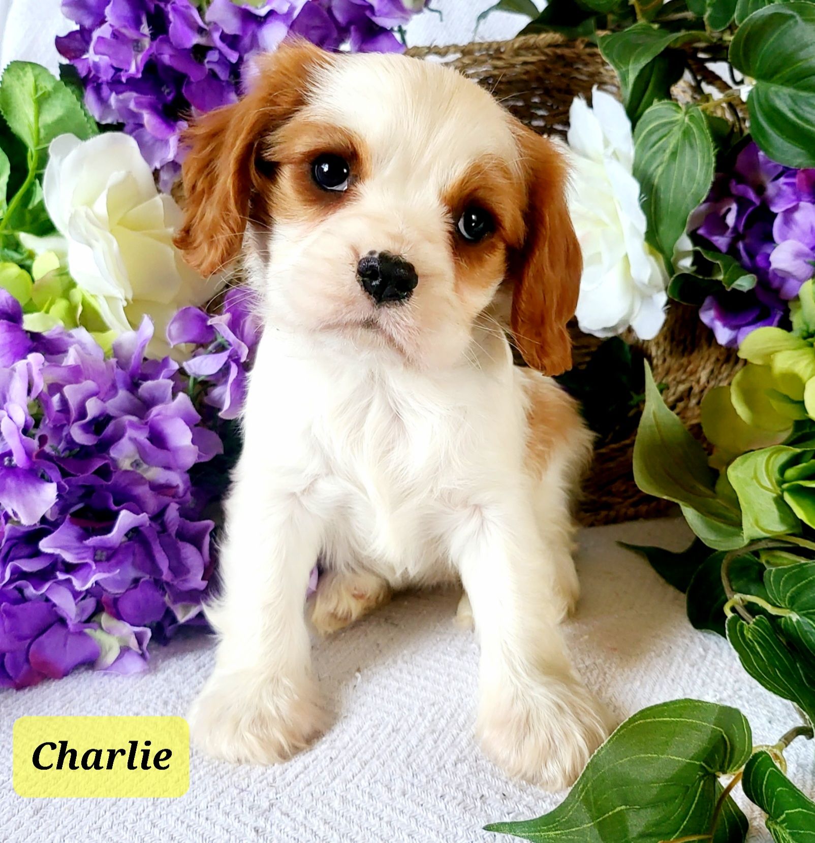 Our Cavalier King Charles Spaniel puppies include blenheim, ruby, tri-color, and black and tan. Cavapoo puppies include cream, red, blenheim, and apricot. Colors will vary depending on the parent dogs.