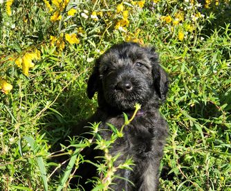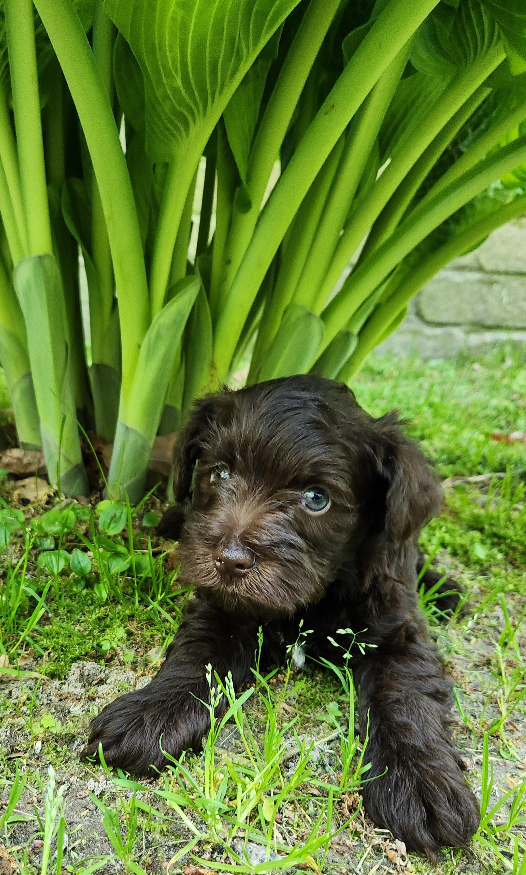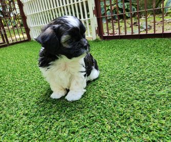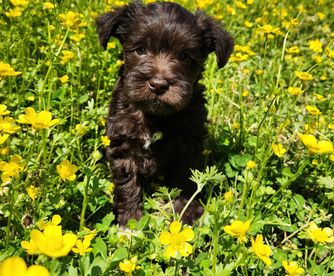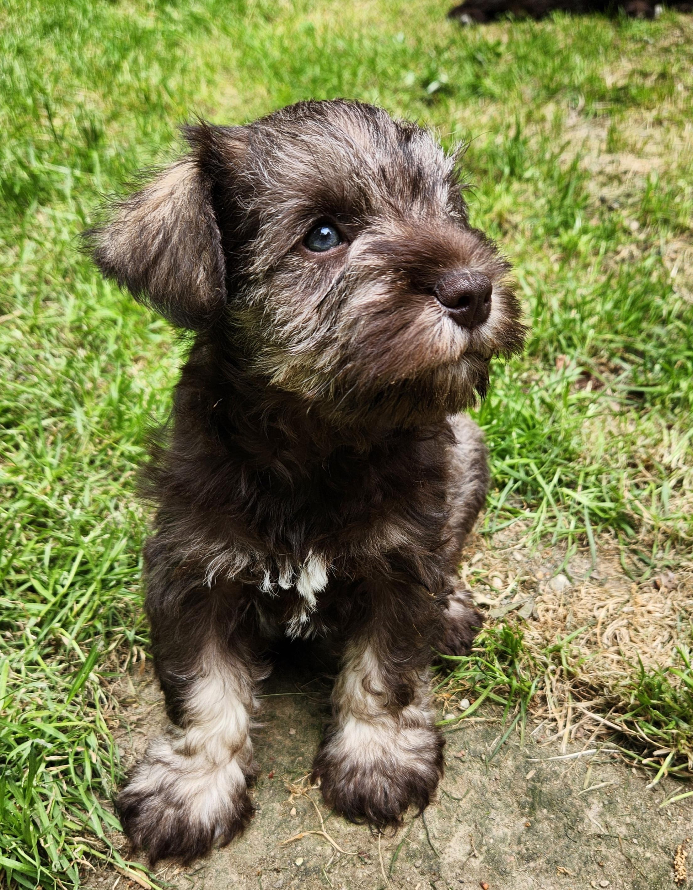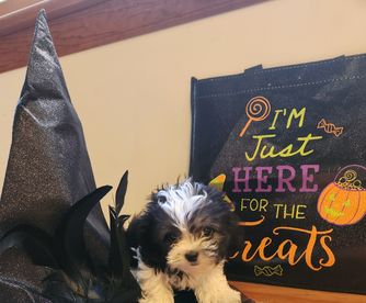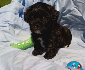 Miniature Schnauzer puppies are liver. Shihpoo puppies include brindle, black and white, and black. Llewellin Setter puppies include liver belton and blue belton and tan (tri-color). Colors will vary depending on the parent dogs.