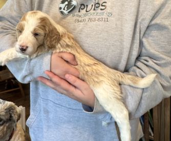Our Goldendoodle puppies include cream, apricot, and red. Yorkshire Terrier puppies include gold, liver, chocolate and tan, parti, and black and tan. Colors will vary depending on the parent dogs.