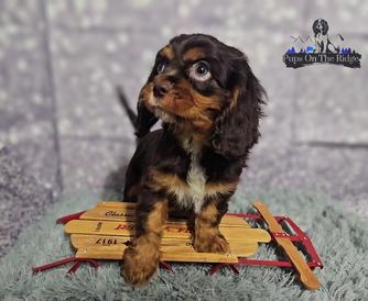 Our Cavalier King Charles Spaniel puppies include blenheim, ruby, tri-color, black and tan, and chocolate. Companion Cross puppies include cream and white. Colors will vary depending on the parent dogs.