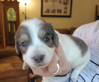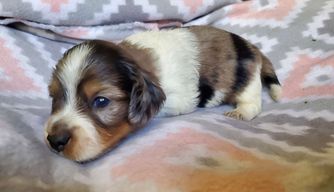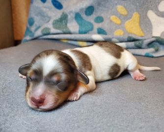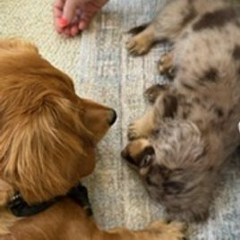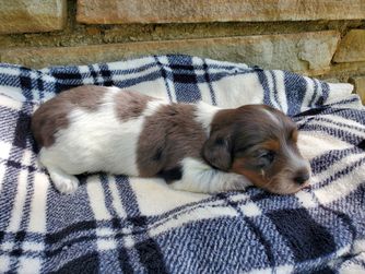 Shawna was the best, she kept me up to date on Cosmo's progress and sent me photos weekly, she was so thoughtful from start to finish. I flew all the way from San Diego, California to Missouri for this little guy and was very nervous about flying him back, but he did so well and we had everything we needed thanks to Shawna for being so prepared. Cosmo is thriving and has learned so much already. I would highly recommend Shawna and her puppies to anyone looking to bring home a new family member.