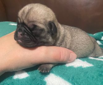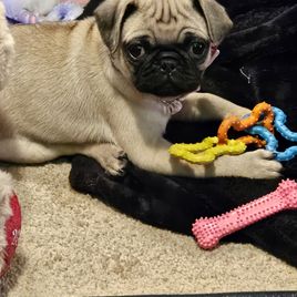 If you are looking for a healthy, happy pug puppy from a great breeder who cares about her pups, you've come to the right place. The moment I found her and saw the puppy I wanted, I reached out and she wasted no time getting back to me. After having filled out the application and paying deposit to reserve my little boy, she would sent updated videos and pictures. She met me halfway when it was time to pick him. The process really could not have gone more smoothly.