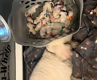 I'm Courtney M., the breeder behind Purley Poodles located in Fishers, IN. All of our dogs are loved as family members. We cherish our pups from birth up until they leave our arms to snuggle into yours! We're dedicated to maintaining responsible breeding practices and breed to AKC standard. Preservation breeding is a lifestyle and we are dedicated to continuing to do so! We practice Puppy Culture and ENS. I Groom my puppies starting at the age of 3 weeks old and every week until they go home so that they have a great understanding of how to behave for grooming throughout their life spans. Our adult dogs are Titled and Health tested through OFA to Chic standard or above, have Embark Genetic testing and are clear of any genetic conditions. Our puppies come with a 2 year genetic Health Guarentee. We're so excited to see them grow and excel from our family to yours!