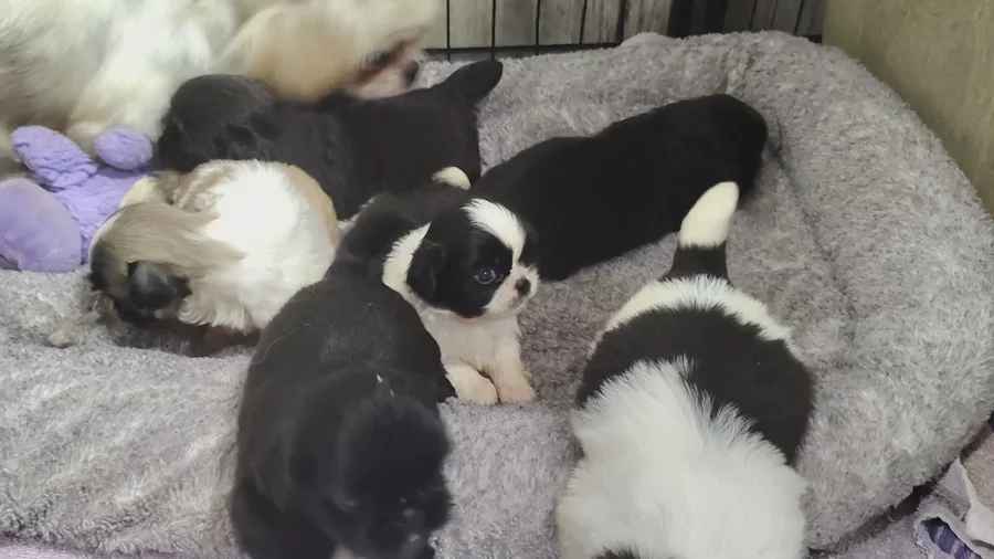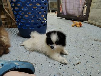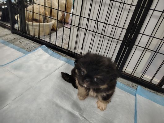 Our Pekingese puppies include light red, gray sable, black, cream, fawn, fawn sable, red, red sable, and white. Pomeranian puppies include black and tan parti, black, chocolate, chocolate and tan, and black and tan. Colors will vary depending on the parent dogs.