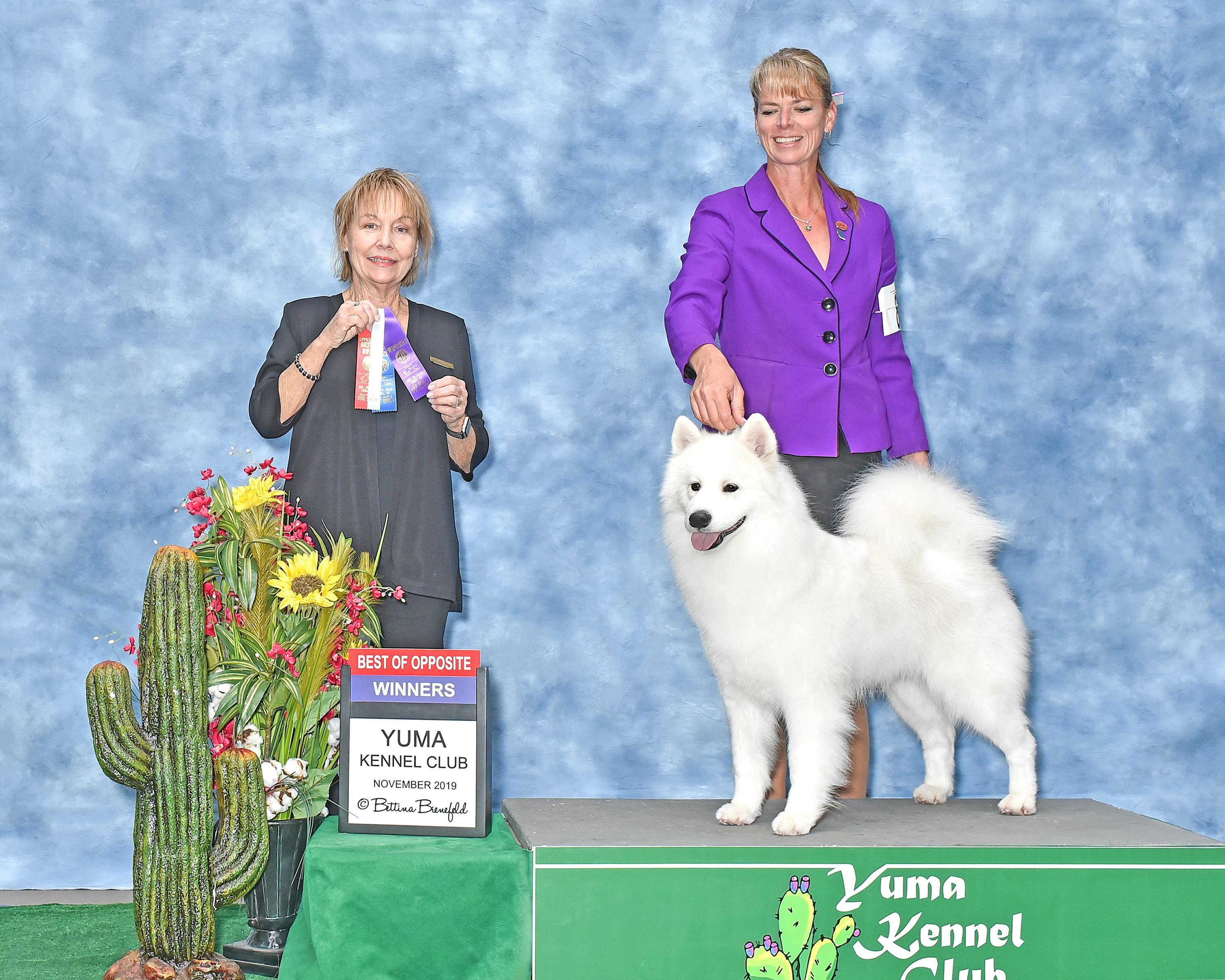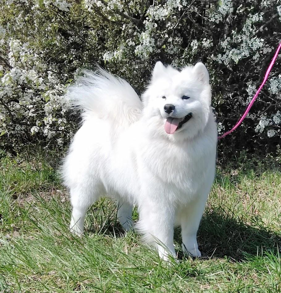 Collie is a female Samoyed. Carefully selected as a great representative of her breed, Michelle decided to make her part of their program. Michelle has passed Good Dog’s screening process, which involved a review of their breeding practices, environment, and the mental and physical health of their dogs.