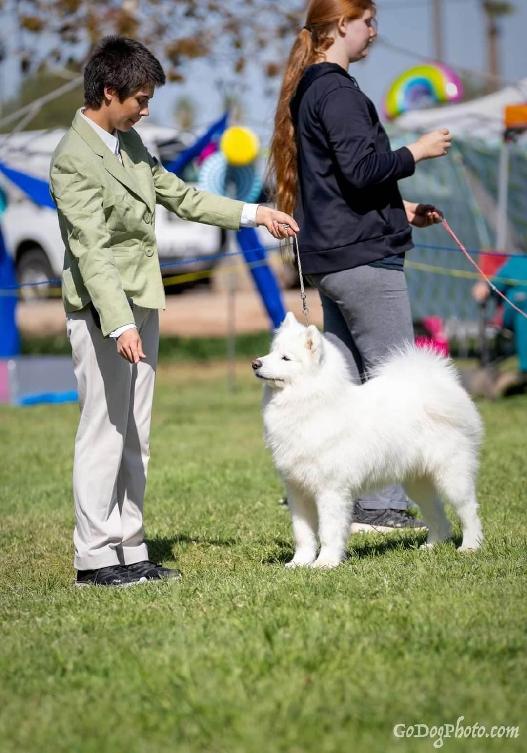 Genny is a female Samoyed. Carefully selected as a great representative of her breed, Michelle decided to make her part of their program. Michelle has passed Good Dog’s screening process, which involved a review of their breeding practices, environment, and the mental and physical health of their dogs.