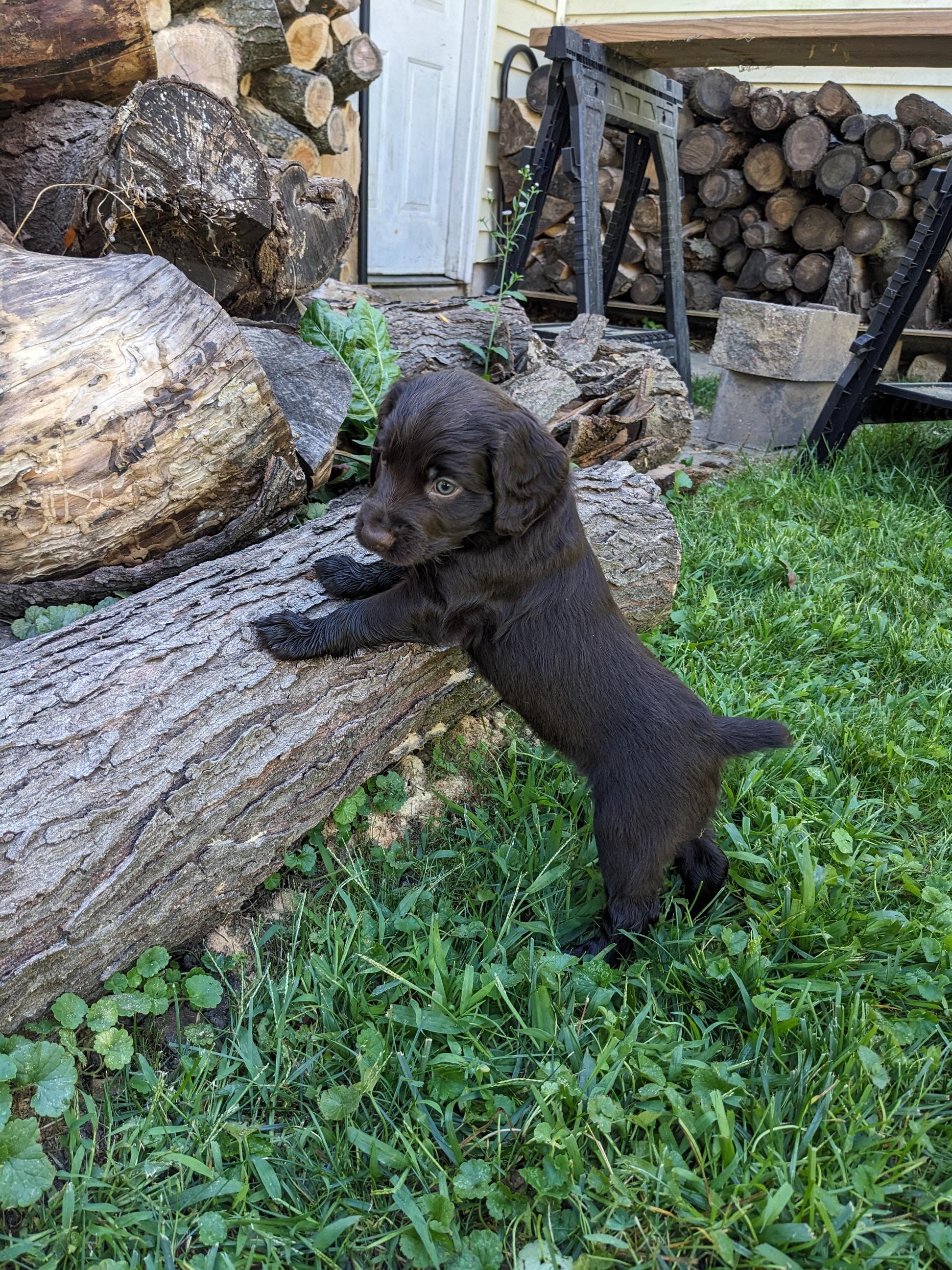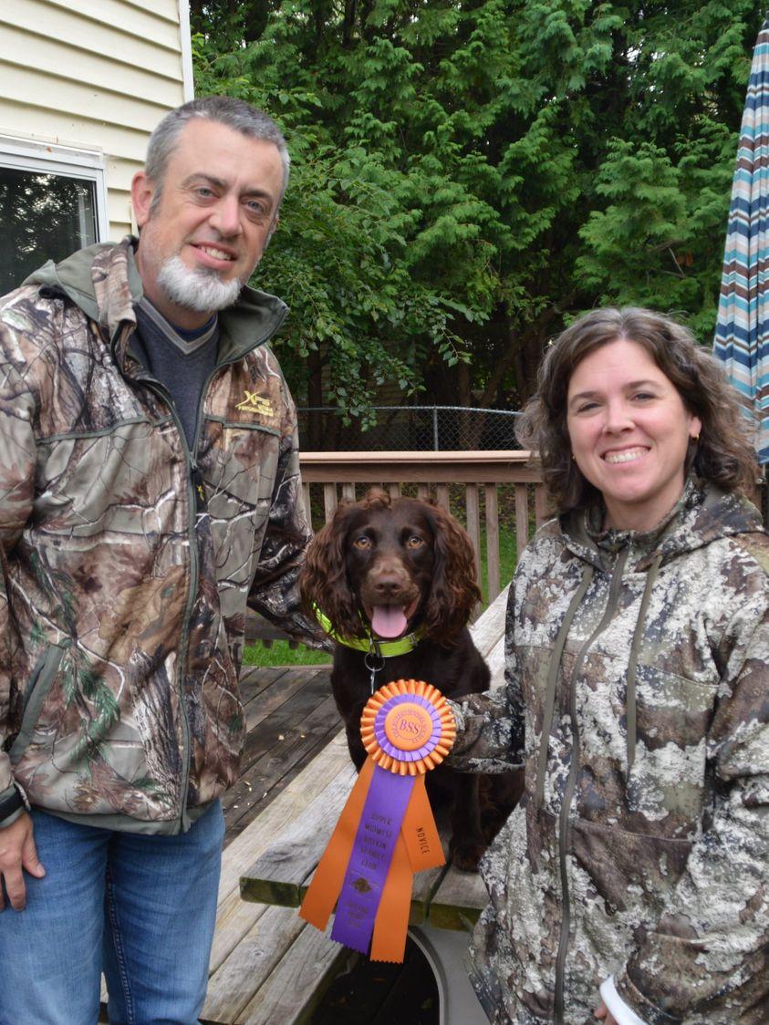 I'm Christina O., the breeder behind Pyro Pups Kennel located in Madison, WI. Both dam and sire are health tested and clear of all common diseases among Boykins. Both parents are titled and come from champion hunt test lines. Both parents are family dogs and interact well with both children and other animals.