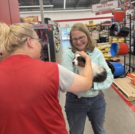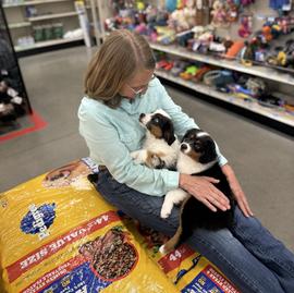 Watch out! A strong chance of puppy kisses on the canine food isle of the local Tractor Supply!