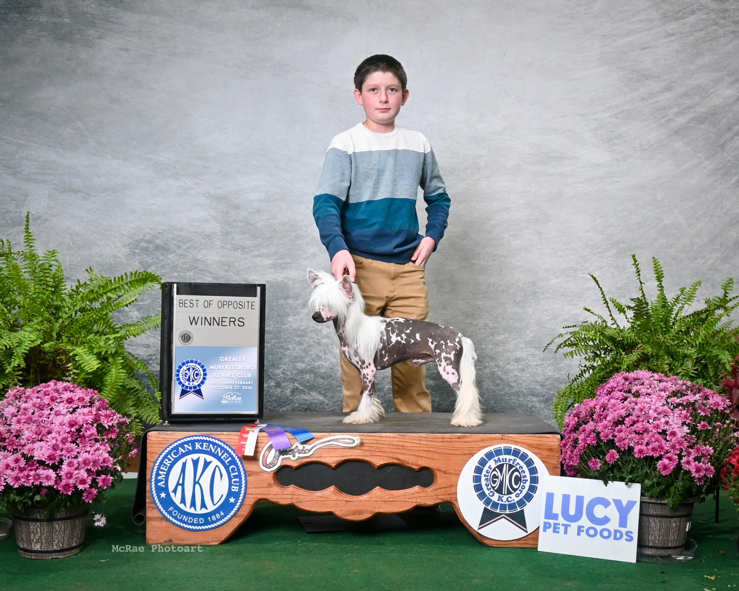 I am a premier breeder of Chinese Crested puppies, and my involvement in the show world speaks to the standards that I breed my dogs by. I do not produce a litter unless my parent dogs are extensively health tested and are excellent representations of the breed standard. It's so fulfilling knowing that I made a positive contribution to their line and to the families who love them!