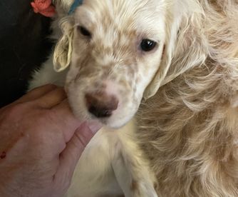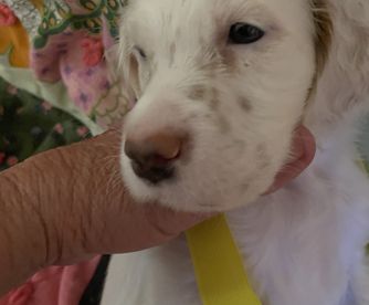 Blossom is a female English Setter. Carefully selected as a great representative of her breed, Tracy decided to make her part of their program. Tracy has passed Good Dog’s screening process, which involved a review of their breeding practices, environment, and the mental and physical health of their dogs.