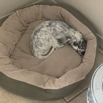 Couch potato… loves to snuggle… hates to show and trained as diabetic alert dog for my husband. Good mom and easy going with other dogs or cats. She is from a frozen litter.