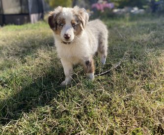 Our puppies include blue merle, black tri, red tri, and red merle. Colors will vary depending on the parent dogs.