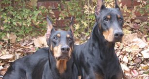 Doberman Pinscher puppies are black and rust. Colors will vary depending on the parent dogs.