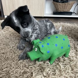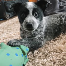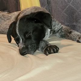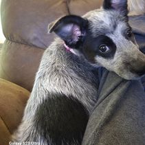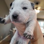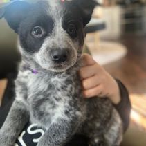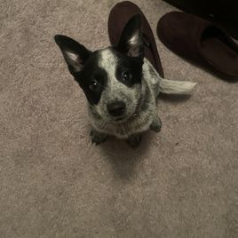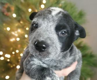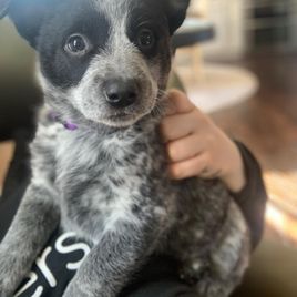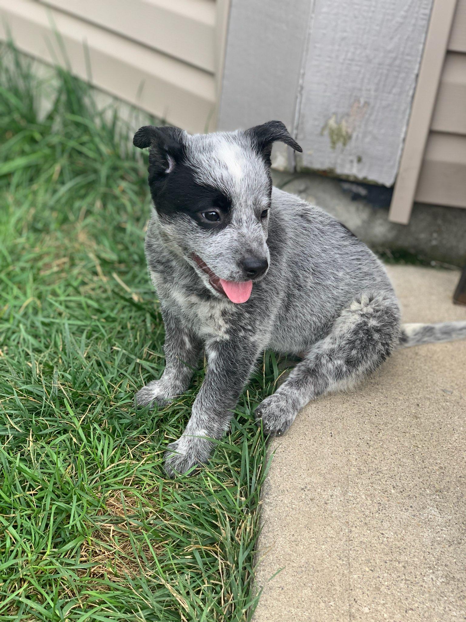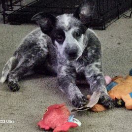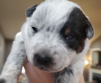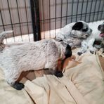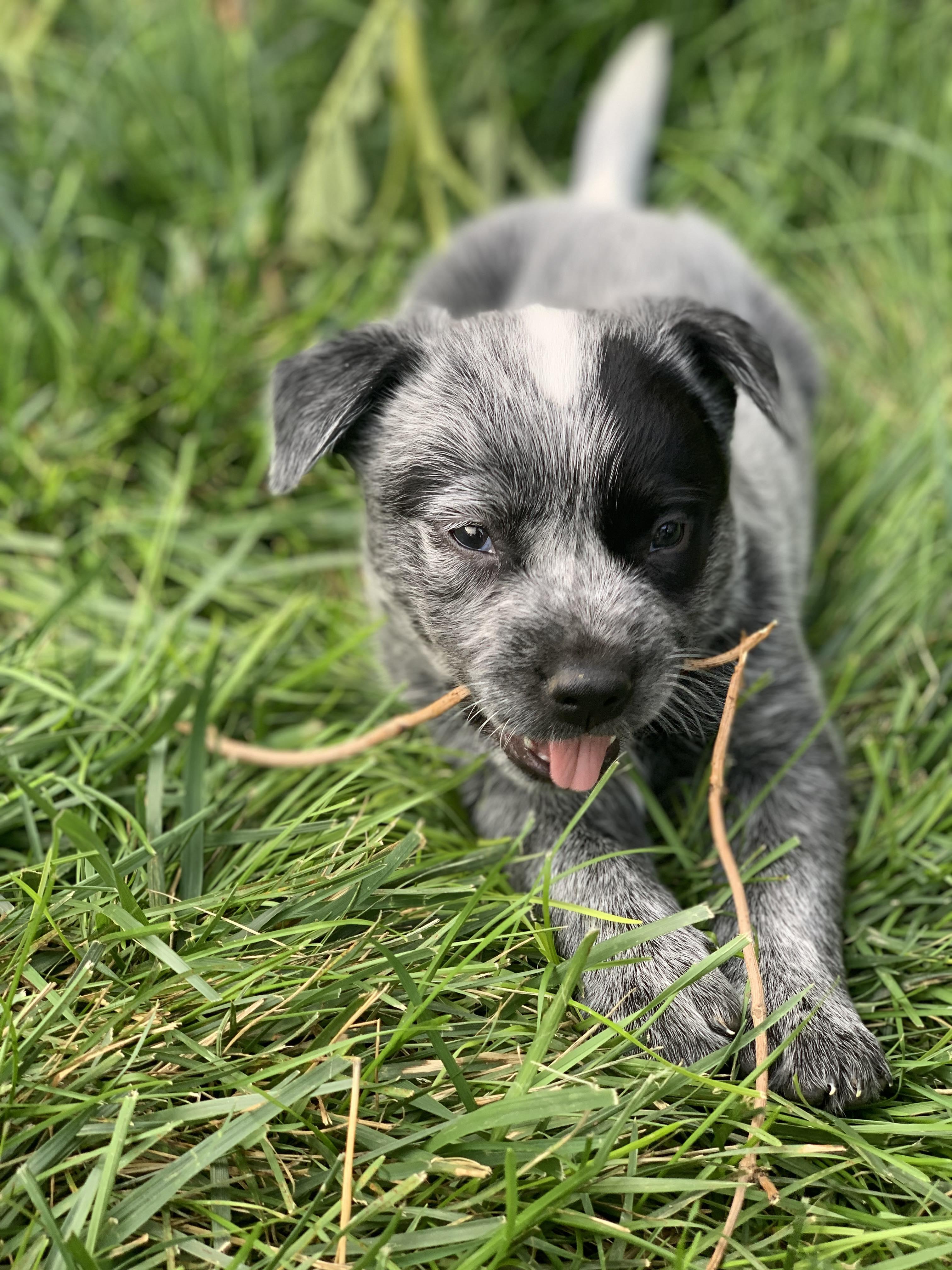 Poppy is a fun loving, but gentle, cattle dog with a lot of personality. She loves to help with farm chores and is always interested in things going on around her. She is a true Blue heeler with no tan points, a mostly full mask, and no body or tail spots. She comes from a line of dogs out of Missouri bred by Piney River Cattle Dogs.