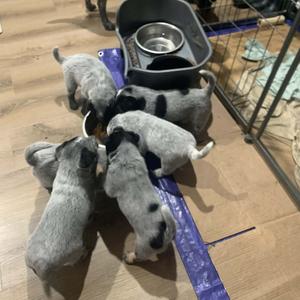 Our puppies include blue speckled, blue mottled, and blue. Colors will vary depending on the parent dogs.