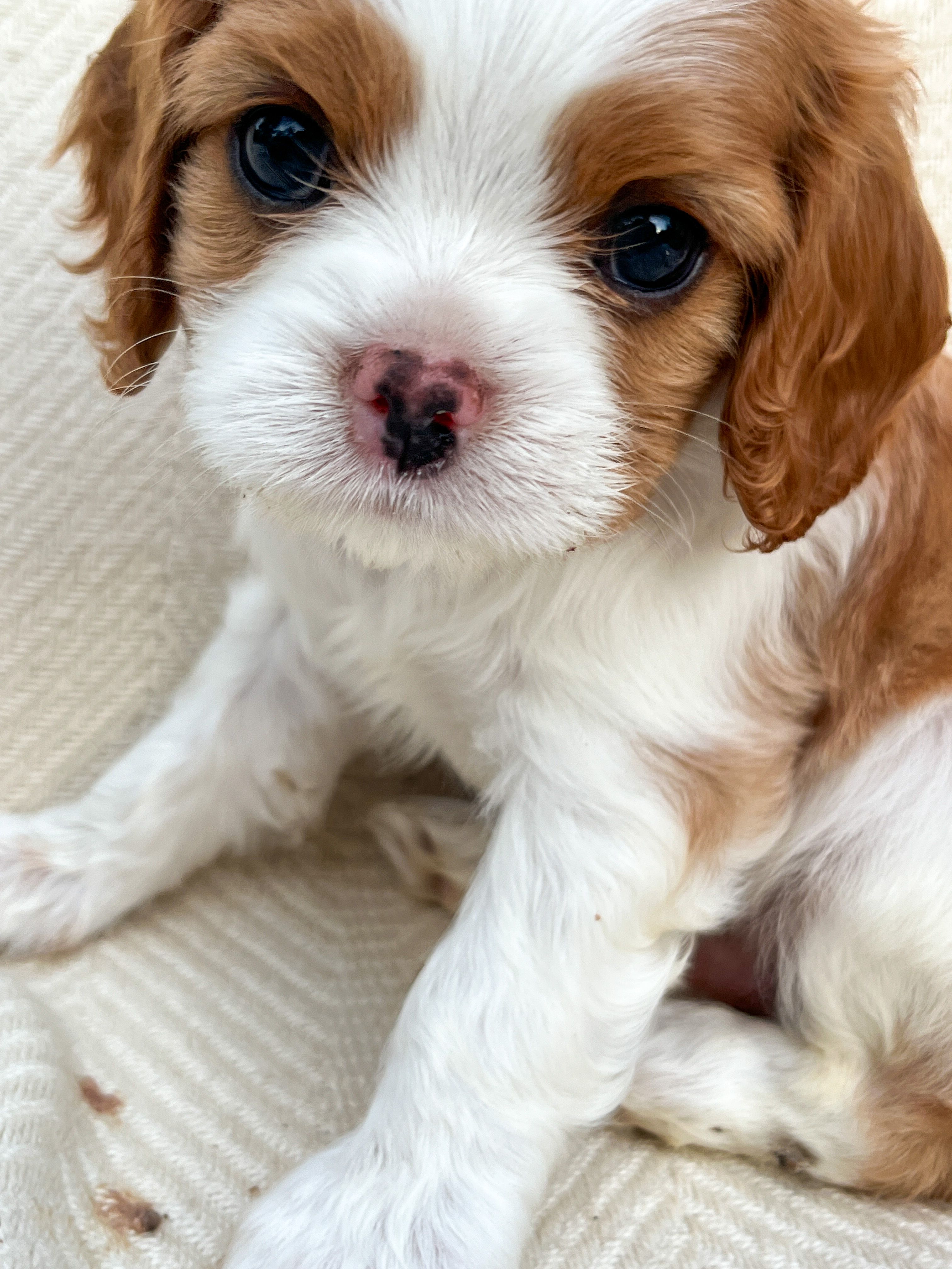 Our puppies are blenheim. Colors will vary depending on the parent dogs.