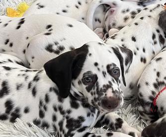 We are breeding to improve our pedigrees in accordance with the standard. Our dogs were completely health, temperament tested & proven in the show ring and on the field and we are proud of that. We are proponents of Puppy Culture, ENS exposed, we have a care binder & lifetime support for our Dal owners. Pups are microchipped, BAER (hearing) tested, vaccinated, dewormed, & have dew claws removed.