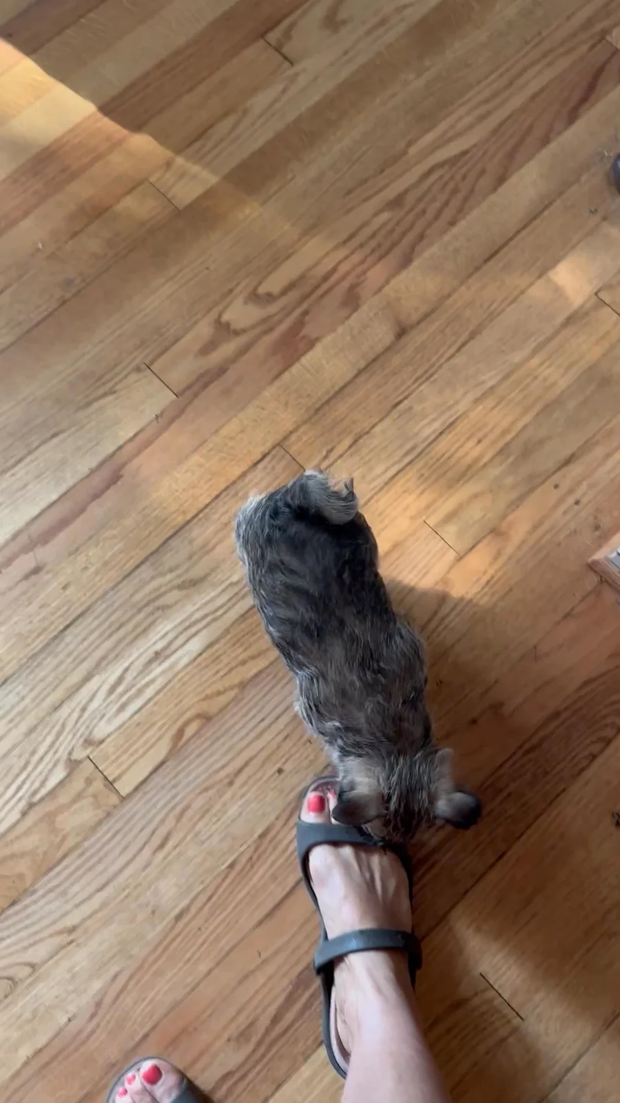 Tiny Tim, aka Wally is a fierce squirrel hunter. He is 100% devoted to us and is always at our side whether we are watching TV or working outside. He is right by our side. He is an especially small Cairn, with a super personality, (our favorite trait)