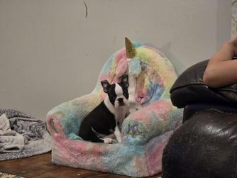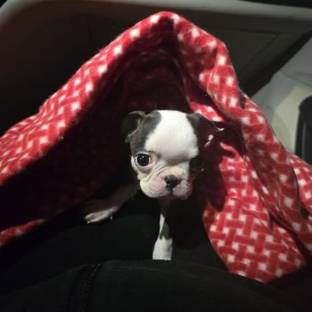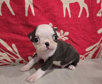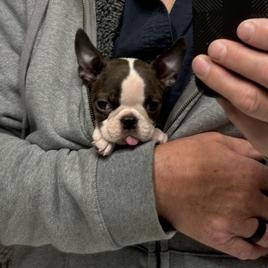 We are so satisfied with the new member of our family. Mena is a beautiful Boston with such a loving and playful demeanor. Baelie from Quinn kennels made the process so easy to come to Illinois from Connecticut. We received regular updates and photos of Mena prior to our trip. We felt like she was already a member of our family. We truly appreciated such a seamless process.