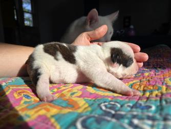 I bought my male first, Oliver, then I saw a sign as I went to pick him up that someone was selling more Bostons and somehow I came home that day with 2. I ended up obsessed with their tempers and noticed how loving Harper was to puppies. I thought to myself I want to bring the same happiness into homes they brought into mine.