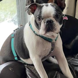 Phoebe is a female Boston Terrier. Carefully selected as a great representative of her breed, Baelie decided to make her part of their program. Baelie has passed Good Dog’s screening process, which involved a review of their breeding practices, environment, and the mental and physical health of their dogs.
