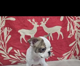 Our puppies are seal brindle and white. Colors will vary depending on the parent dogs.