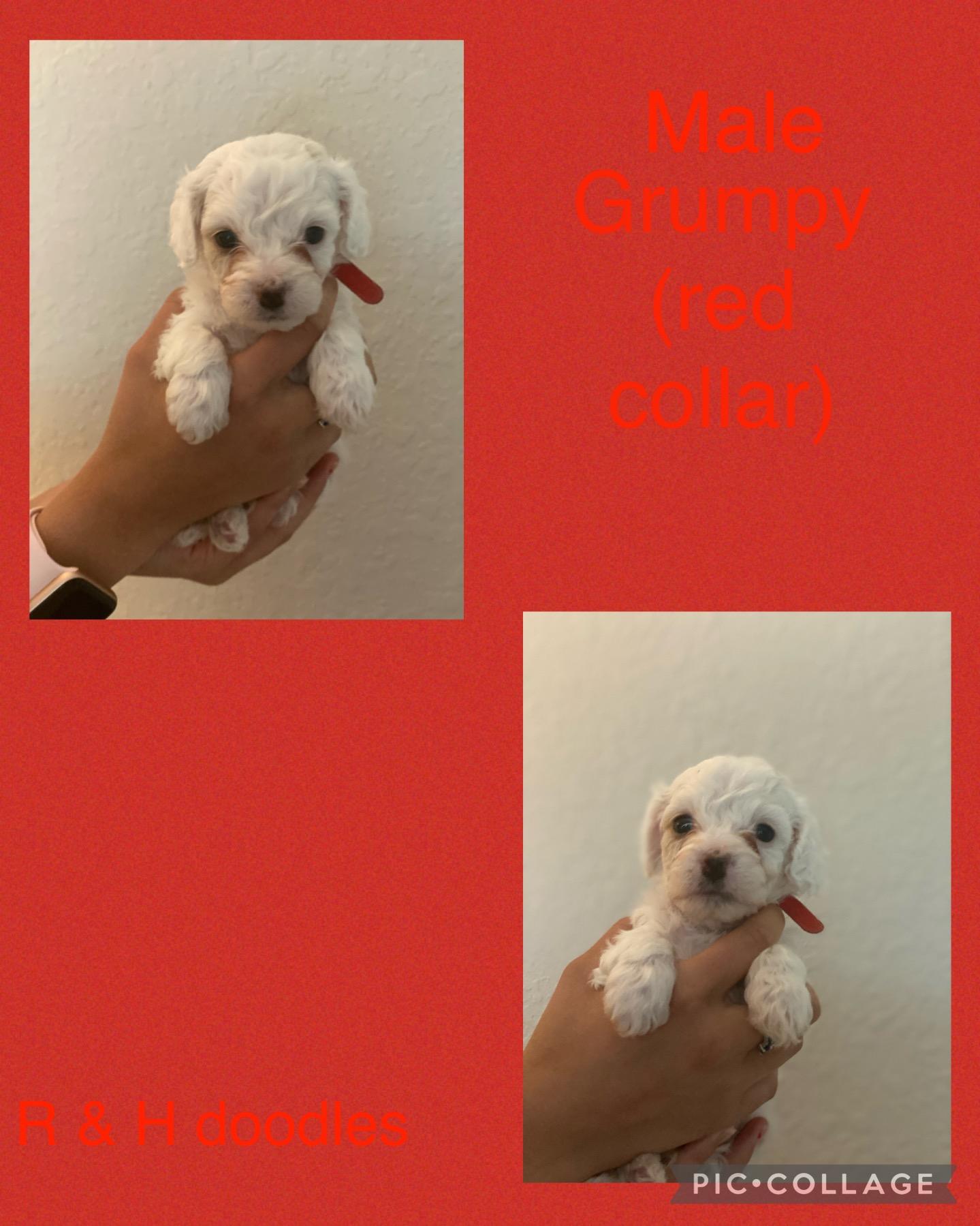 Our Goldendoodle puppies include red and parti. Cavapoo puppies include white and apricot. Colors will vary depending on the parent dogs.