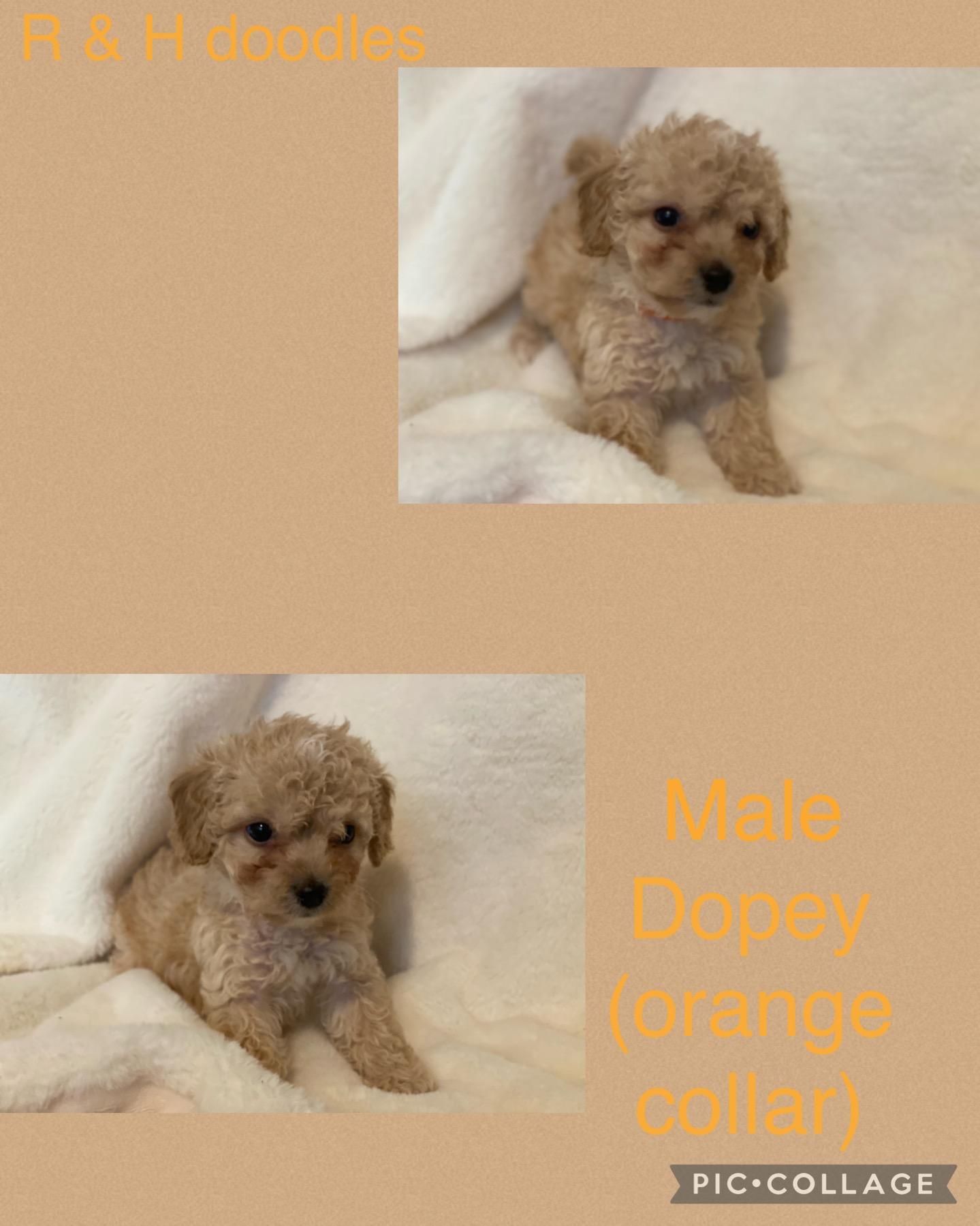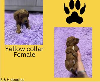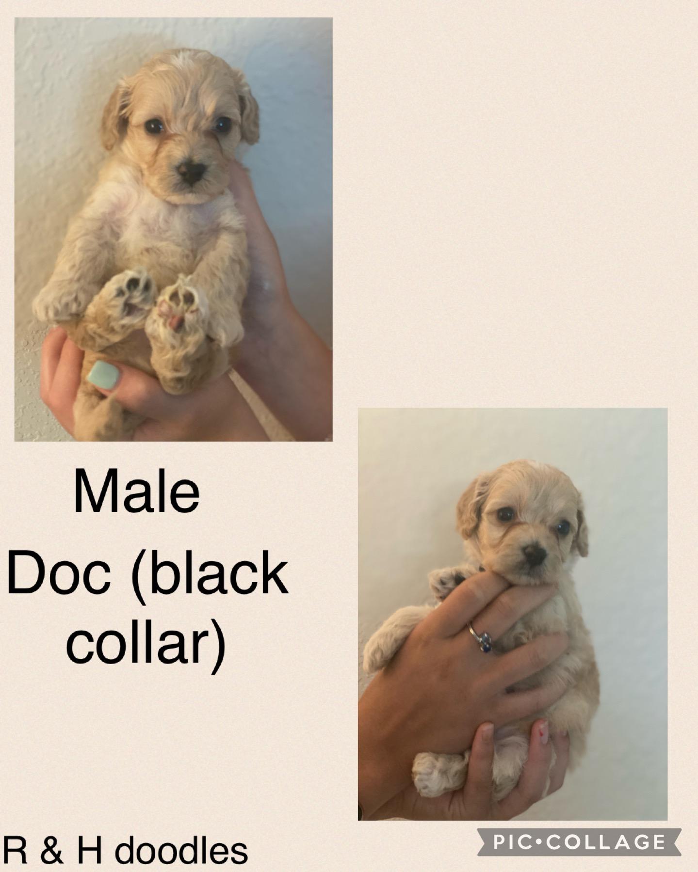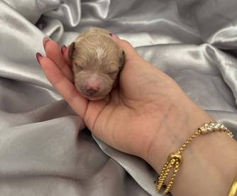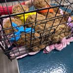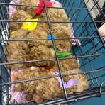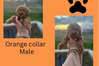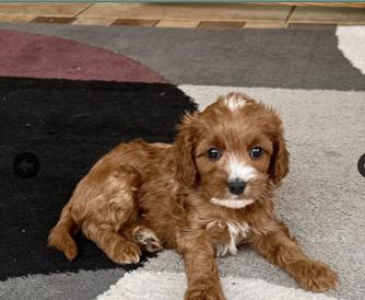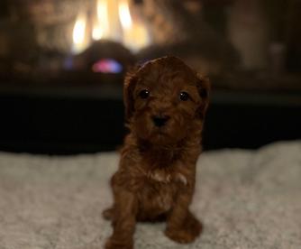 Our Cavapoo puppies include white and apricot. Goldendoodle puppies include red and parti. Colors will vary depending on the parent dogs.