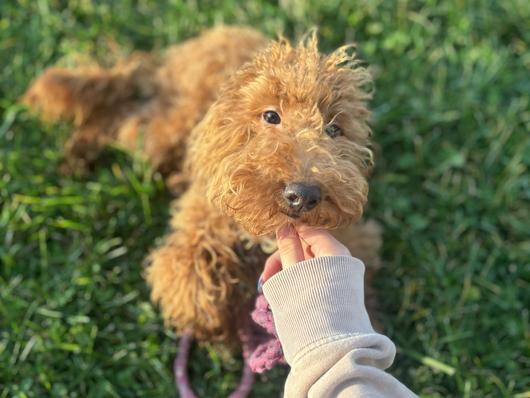 Ruby is a female Goldendoodle almost 2 years old. Carefully selected as a great representative of her breed, Haylee decided to make her part of their program. Haylee has passed Good Dog’s screening process, which involved a review of their breeding practices, environment, and the mental and physical health of their dogs.
