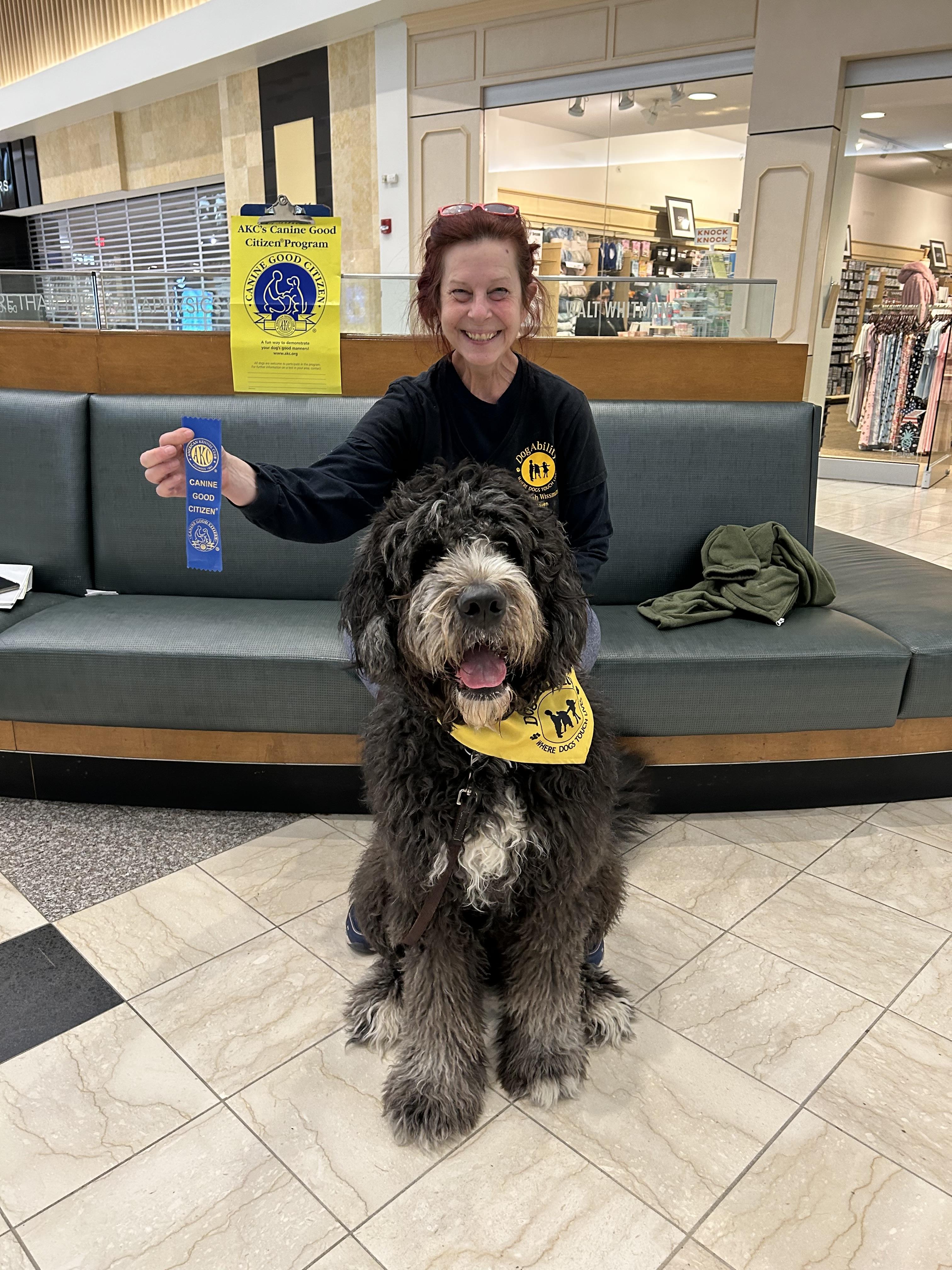 Raven is a female Saint Berdoodle. Carefully selected as a great representative of her breed, Deborah decided to make her part of their program. Deborah has passed Good Dog’s screening process, which involved a review of their breeding practices, environment, and the mental and physical health of their dogs.