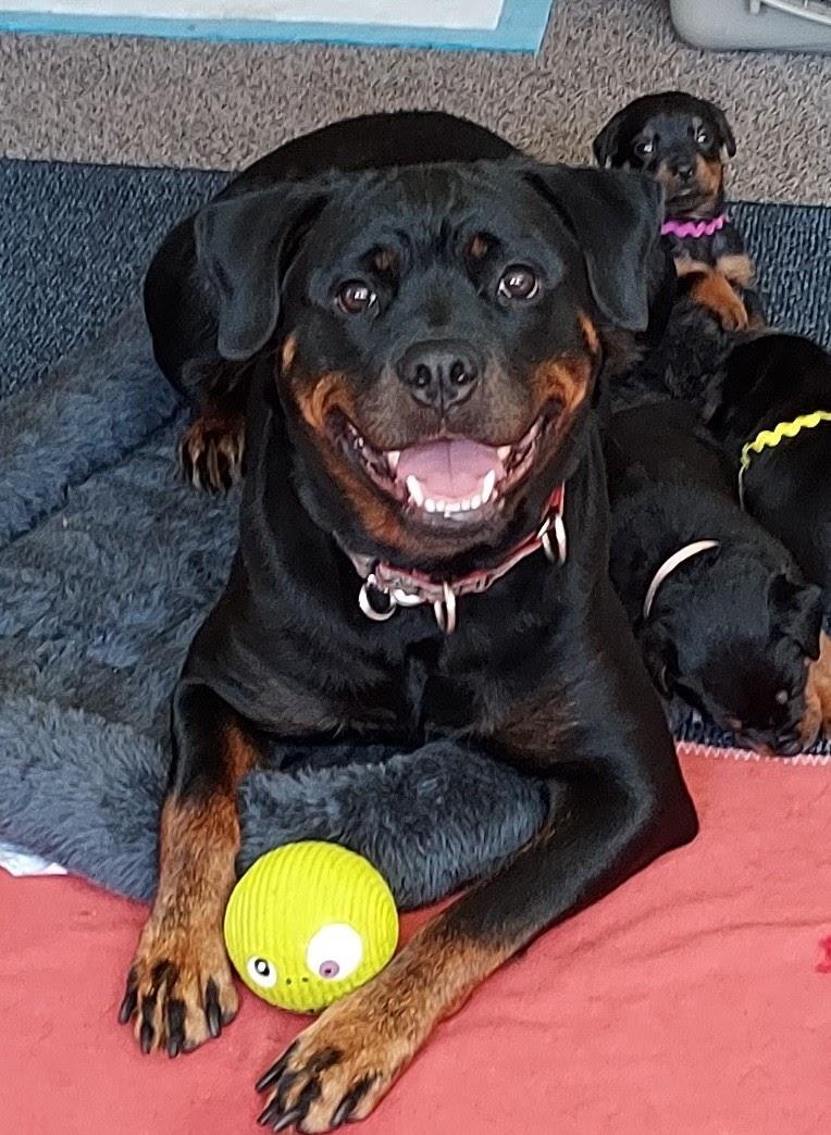 I'm Lynne P., the breeder behind Rabenbucht Rottweilers located in Brimfield, MA. Our goal is to breed the ideal Rottweiler. We strive to maintain and produce pups with correct conformation, working ability, and true Rottweiler temperament. All of our puppies have their natural tails as per the ADRK/FCI Breed Standard. We’re very passionate about breeding the highest quality dogs.