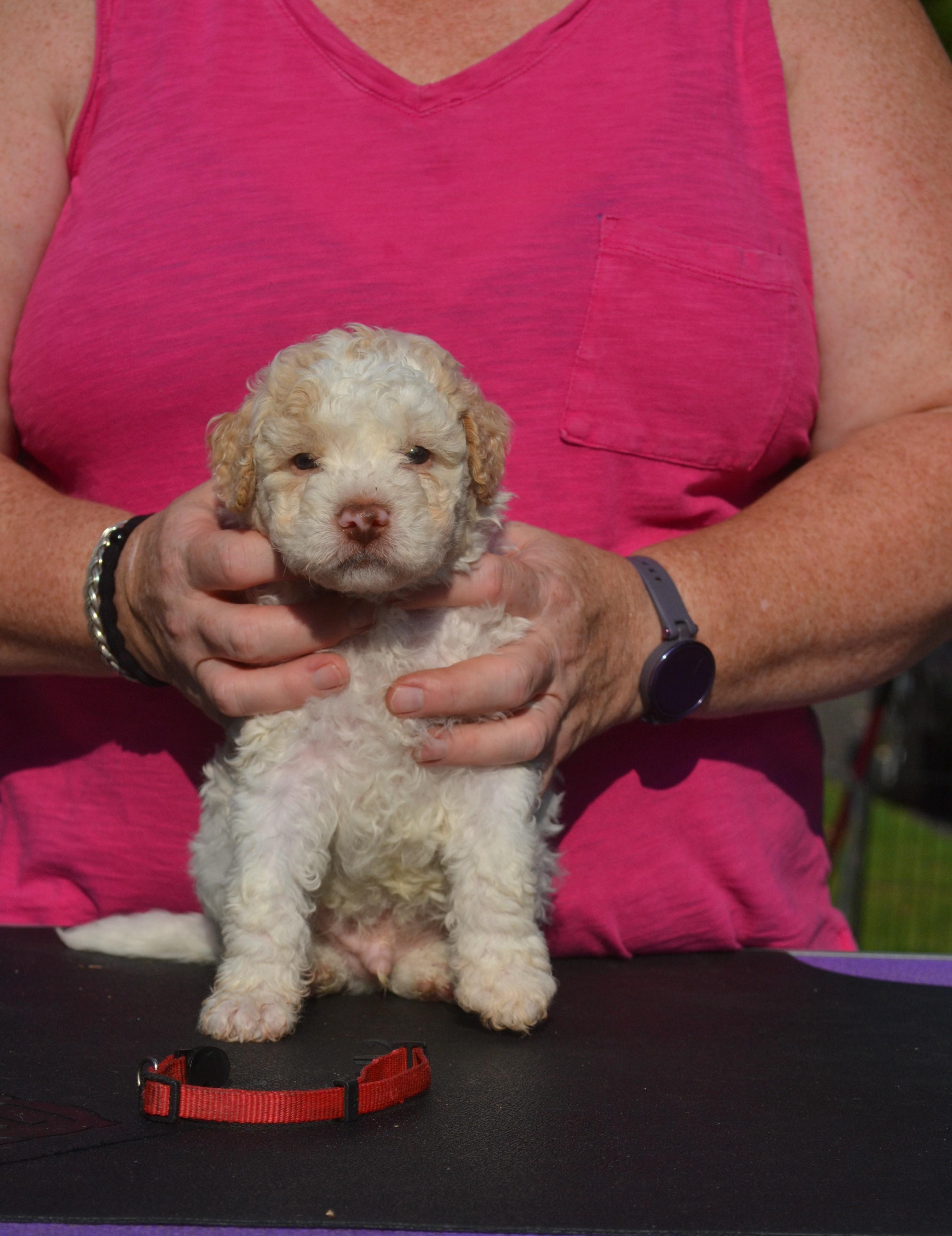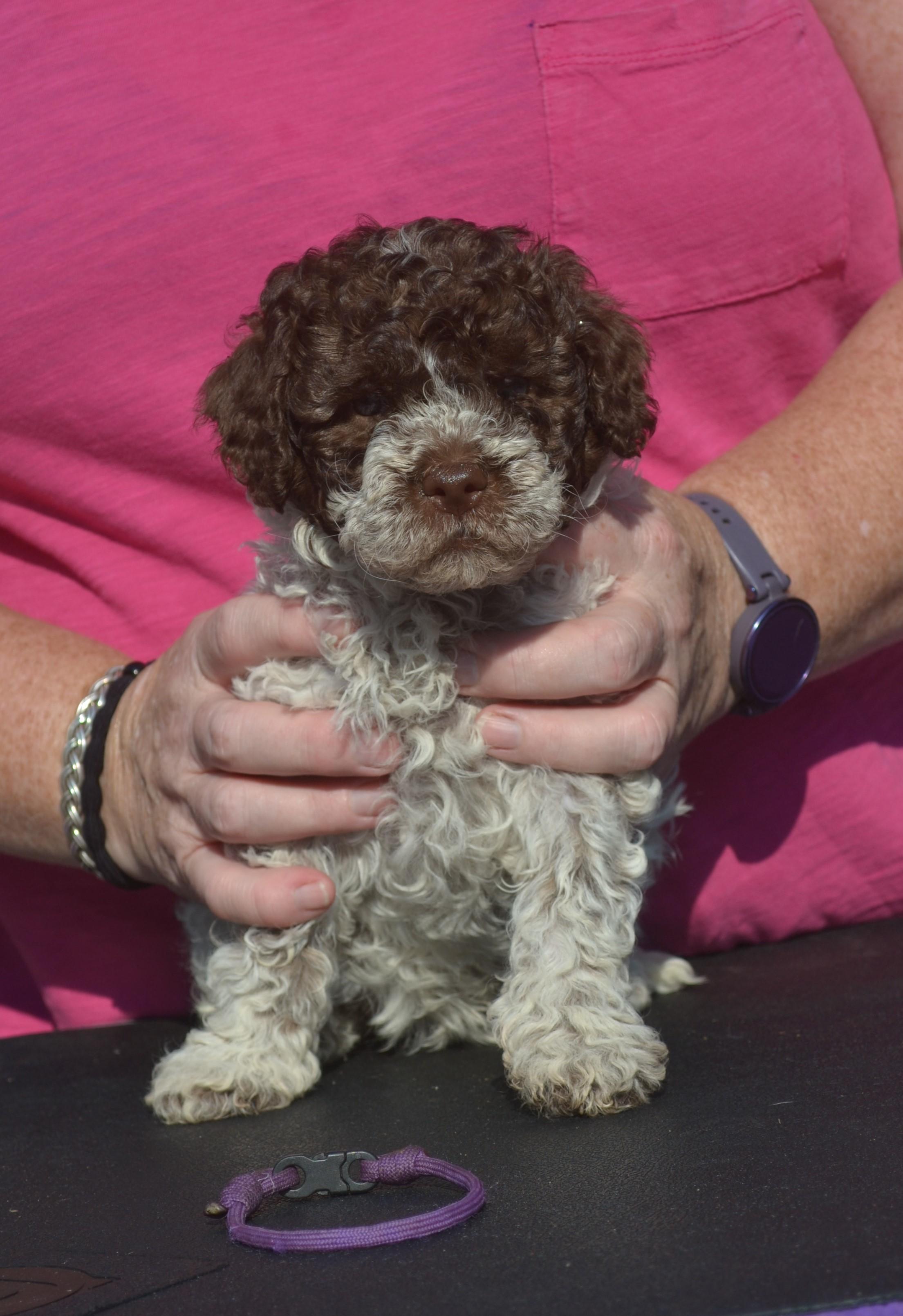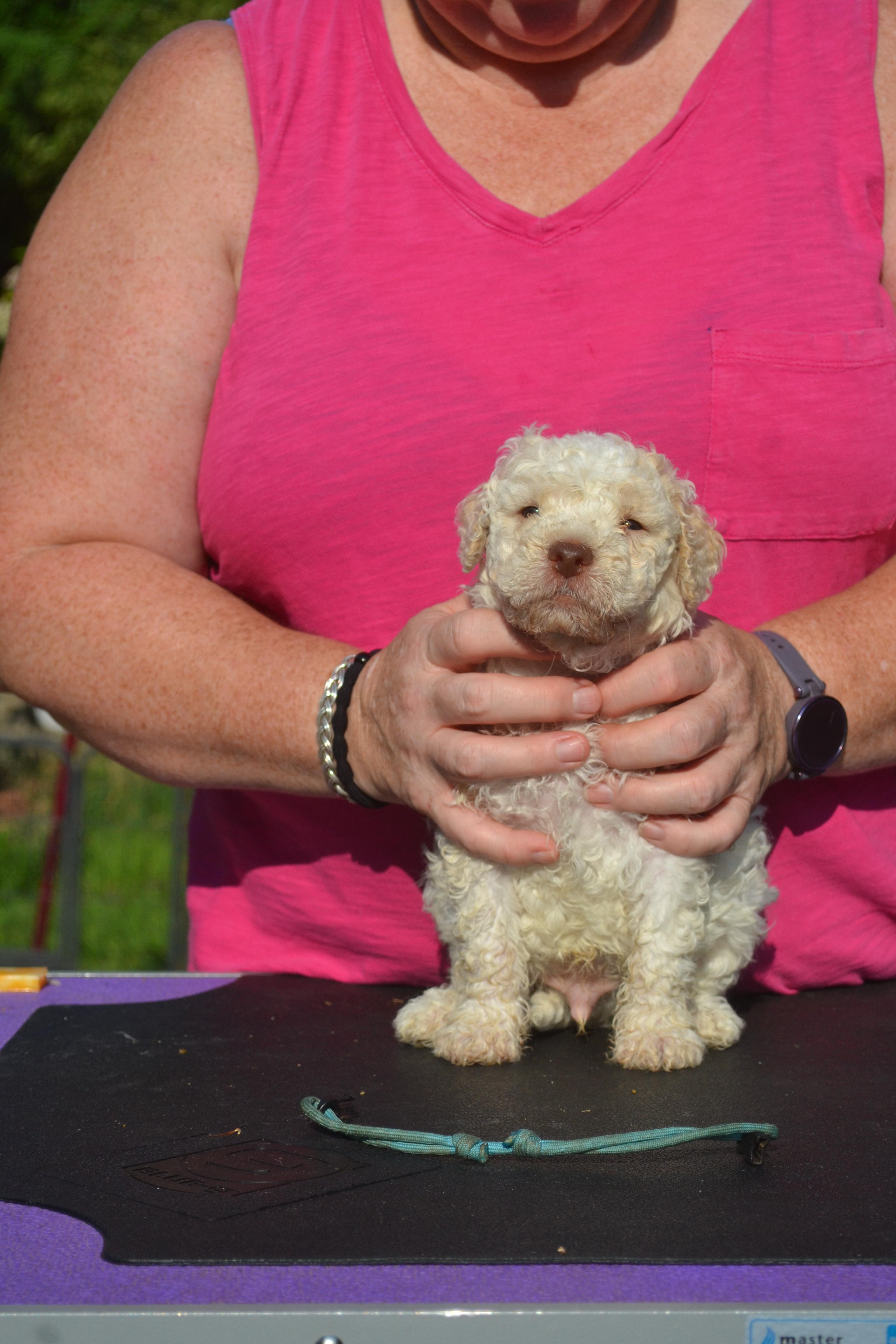 Silli is a female Lagotto Romagnolo. Carefully selected as a great representative of her breed, Sarah decided to make her part of their program. Sarah has passed Good Dog’s screening process, which involved a review of their breeding practices, environment, and the mental and physical health of their dogs.