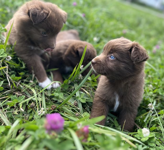 “Hello, We Genetically test all of our dogs. Puppies start all vet care within 3 days of birth and stay up to date on all Vaccinations and deworming. We dock tails and remove dewclaws. We also like to give them the best start with training, hygiene, and healthcare. They come with a health guarantee as well as your puppy pack starter kit. They are ASDR and AKC Tris range from $1500-2000 and Merles range from $2000-2500. We are always here for any questions or support! We love our Aussies and enjoy Sharing our experience and knowledge! Deposits are nonrefundable, however under certain circumstances can be transferable.”