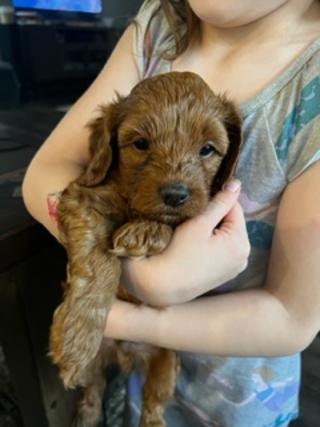 Sunny is a female Cockapoo. Carefully selected as a great representative of her breed, Rachel decided to make her part of their program. Rachel has passed Good Dog’s screening process, which involved a review of their breeding practices, environment, and the mental and physical health of their dogs.