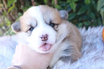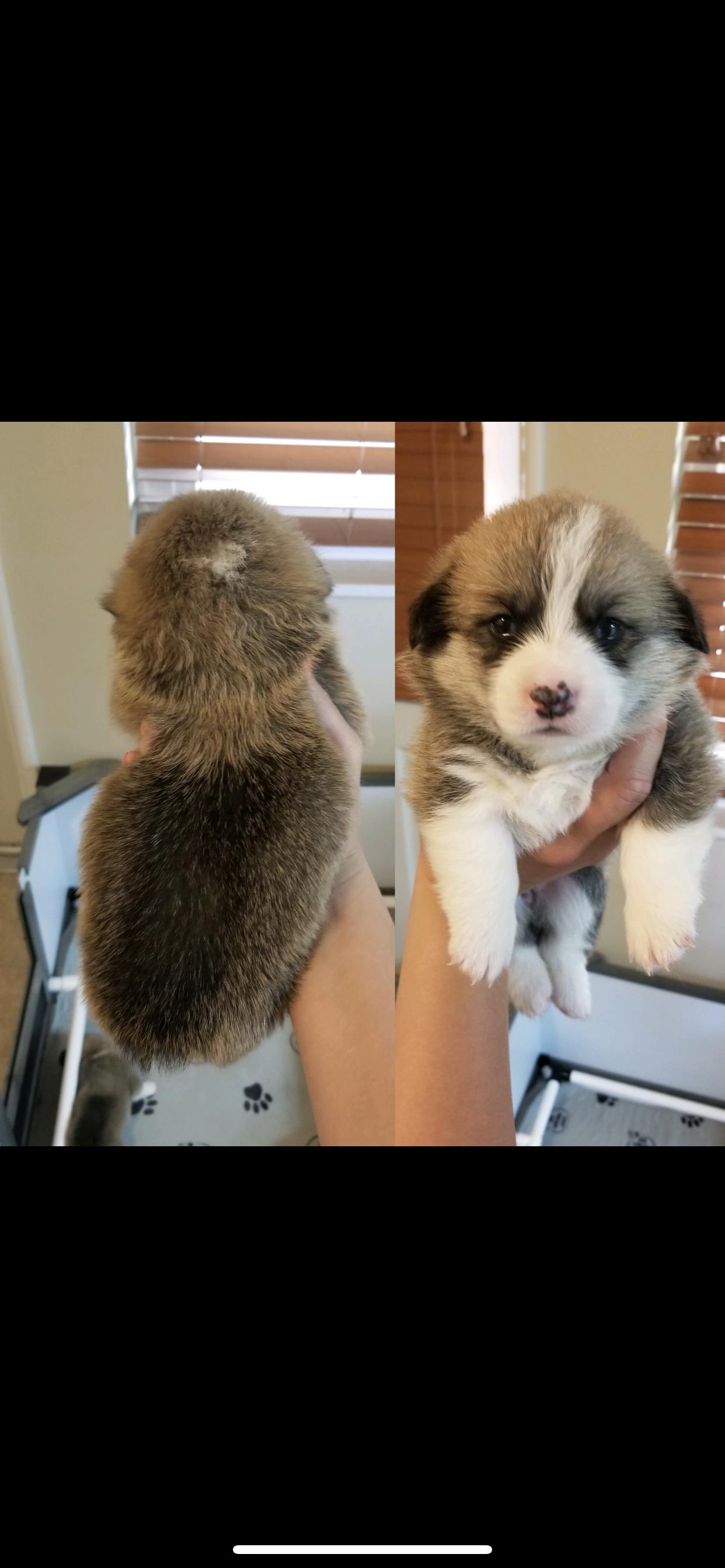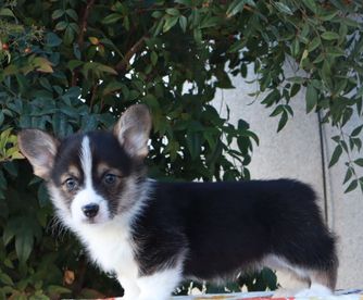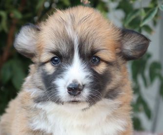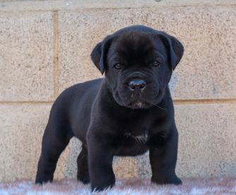 Our Cane Corso puppies are gray. Pembroke Welsh Corgi puppies include fawn, red, and sable. Colors will vary depending on the parent dogs.