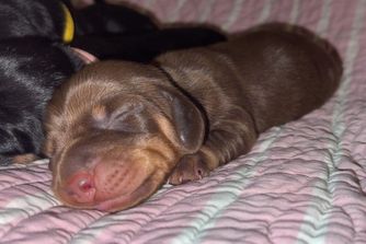 Tootsie is a female Dachshund. Carefully selected as a great representative of her breed, Ragan decided to make her part of their program. Ragan has passed Good Dog’s screening process, which involved a review of their breeding practices, environment, and the mental and physical health of their dogs.