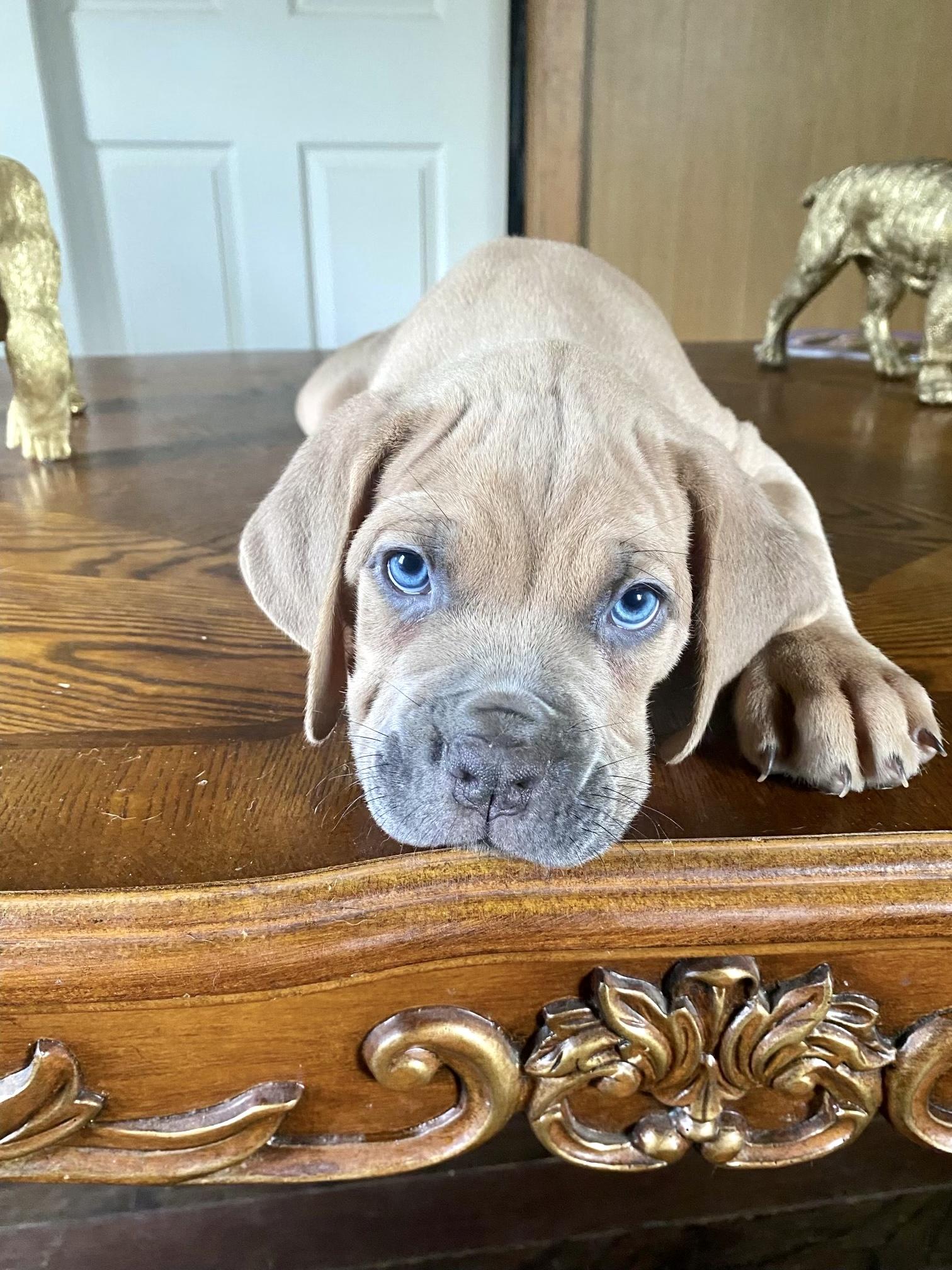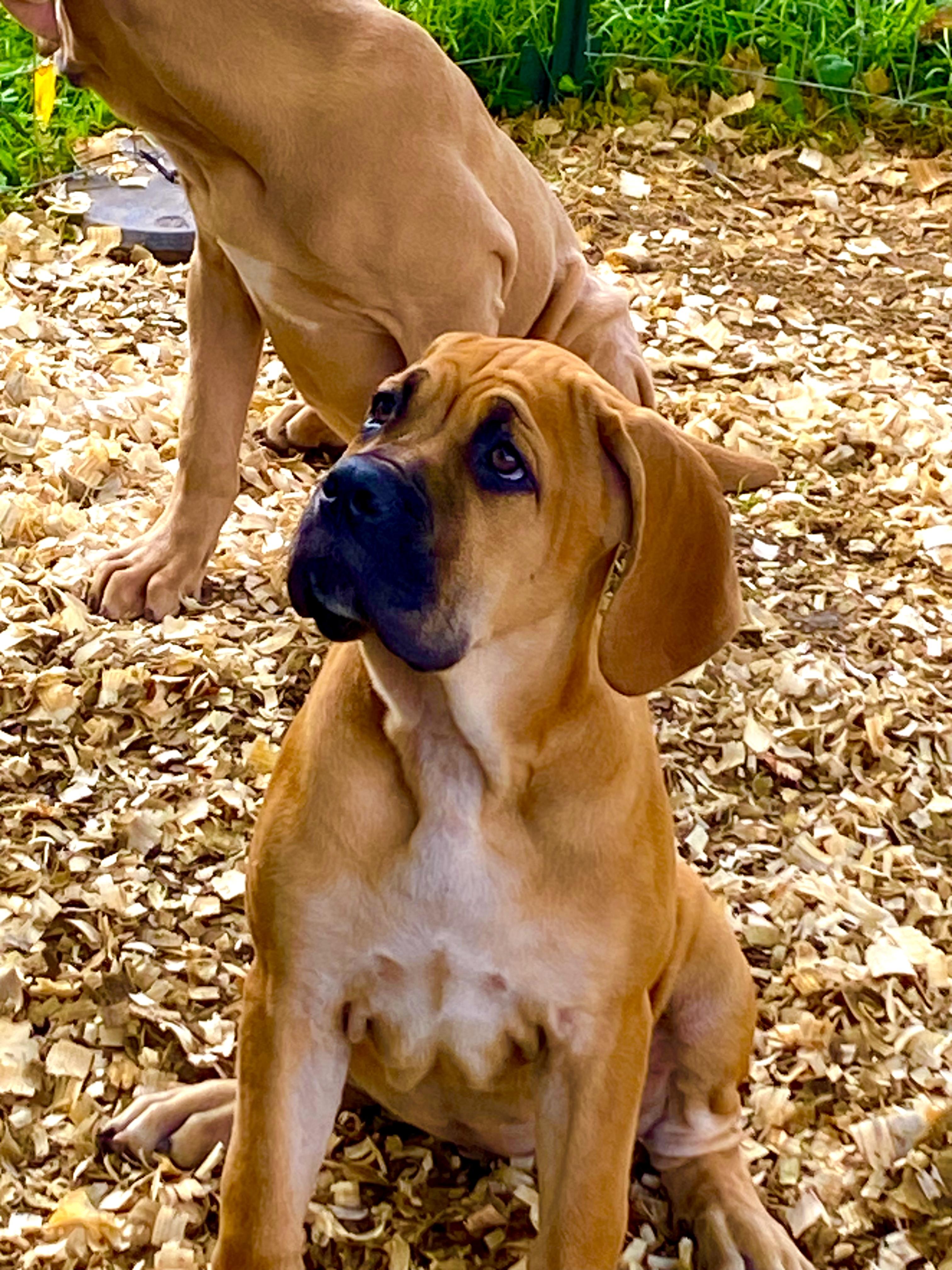 Aria is a female Cane Corso. Carefully selected as a great representative of her breed, Olana decided to make her part of their program. Olana has passed Good Dog’s screening process, which involved a review of their breeding practices, environment, and the mental and physical health of their dogs.