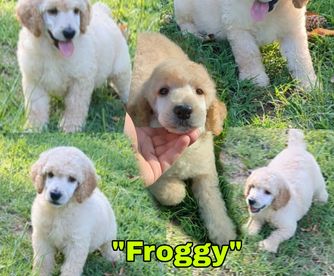 Our Poodle puppies include apricot, black, brown, cream, red, parti, phantom, and brindle. Goldendoodle puppies include cream, apricot, red, and parti. Colors will vary depending on the parent dogs.