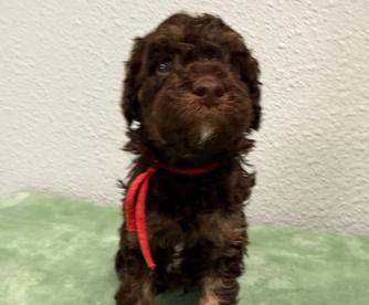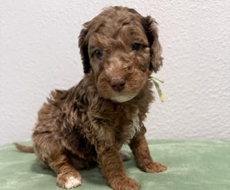Our Goldendoodle puppies include apricot, red, and chocolate. Aussiedoodle puppies include black and white and black tri-color. Bernedoodle puppies include tri-color and phantom. Colors will vary depending on the parent dogs.