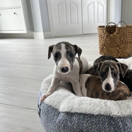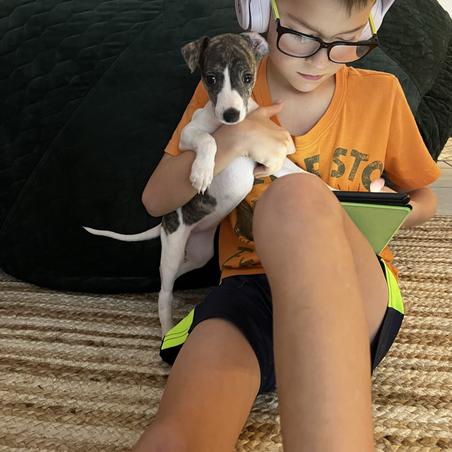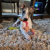 We had a great experience with Kiana at Rainbow Whippets. She was a pleasure to work with, keeping us informed and updated with adorable photos of Teddy, Jr while we waited to pick him up. When we finally met him, we were blown away by his loving personality, which is clearly a testament to his wonderful parents, Teddy and Luna. Teddy, Jr is already thriving picking up potty training quickly and sleeping through most of the night! We're so happy with our new furry family member and can't recommend Rainbow Whippets highly enough for anyone looking for a sweet, gentle and stunning whippet with a beautiful temperament. Kiana's dedication to raising well socialized and loving puppies truly shines through in Teddy, Jr and we feel so grateful to have found such a wonderful addition to our family!