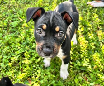 Our puppies are black tan and white. Colors will vary depending on the parent dogs.