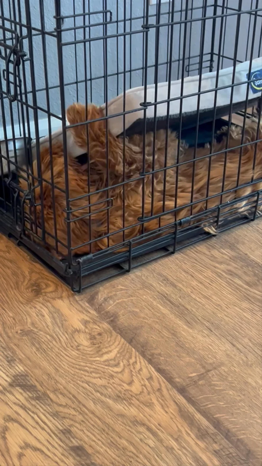 Lucky still available! Lucky during nap time, house and crate, trained level #1 He likes to get under the sleep bed🤣🐶🤪
