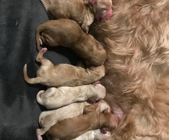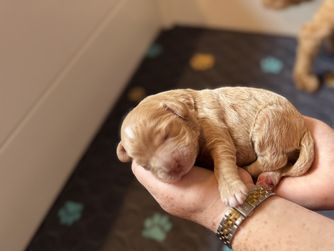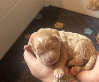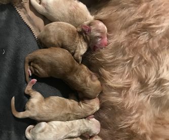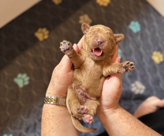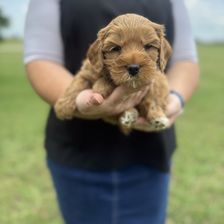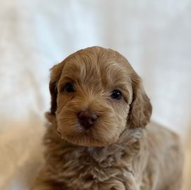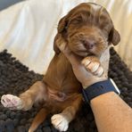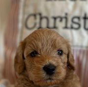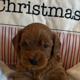 Puffy litter first pairing is our anticipated, and carefully selected litter to finish out the year for 2024. Puffy lives in Waco with her Guardian family in West. She is a small petite 15 pounds. Copper is our small red Labradoodle with red fleece coat.