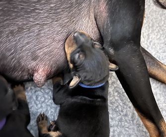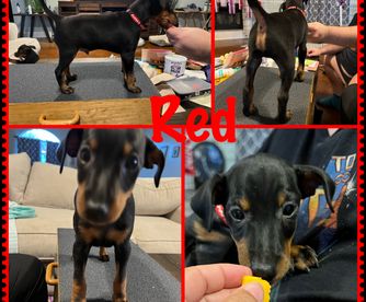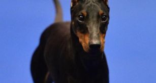 Mona is a female Manchester Terrier. Carefully selected as a great representative of her breed, Sabra decided to make her part of their program. Sabra has passed Good Dog’s screening process, which involved a review of their breeding practices, environment, and the mental and physical health of their dogs.