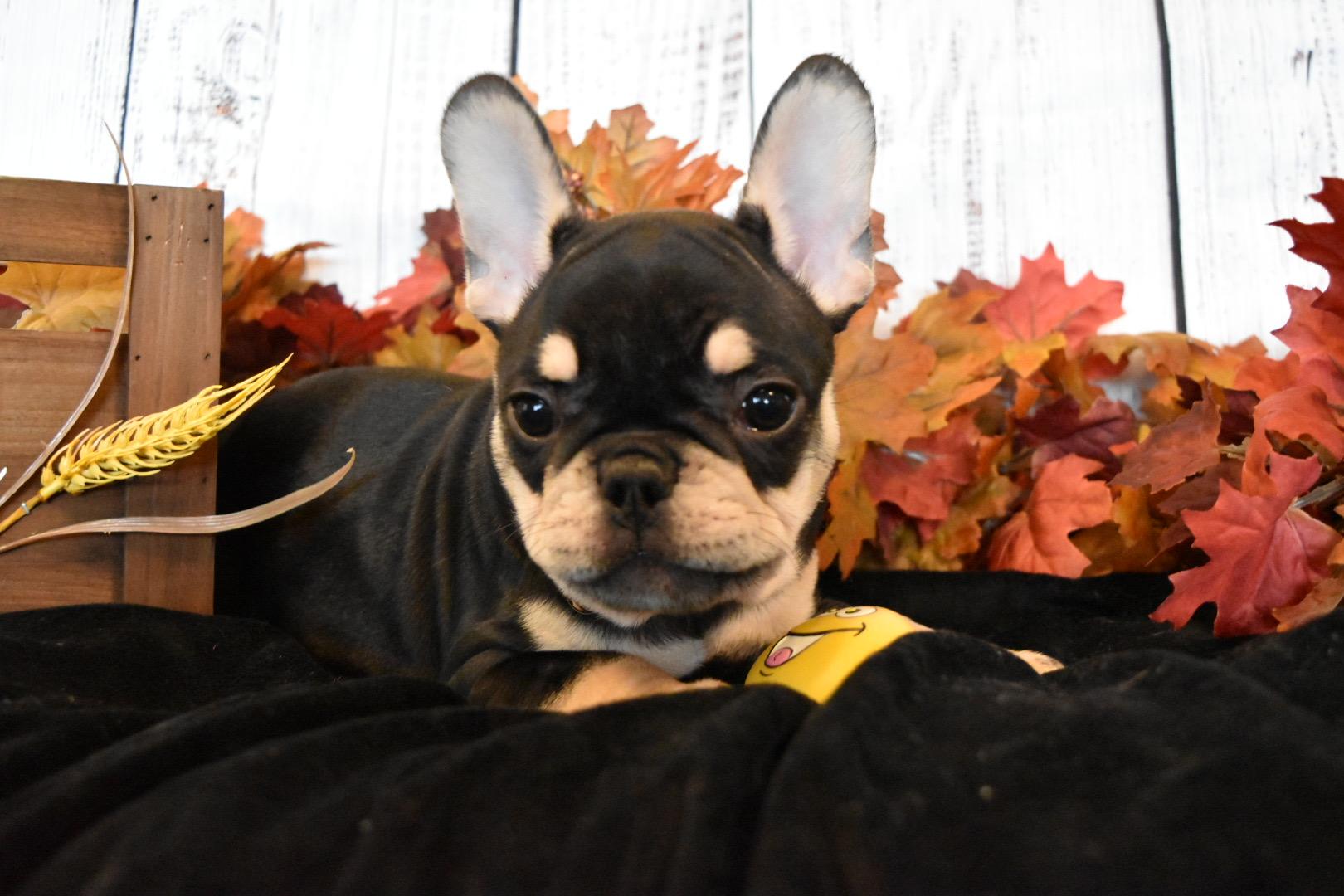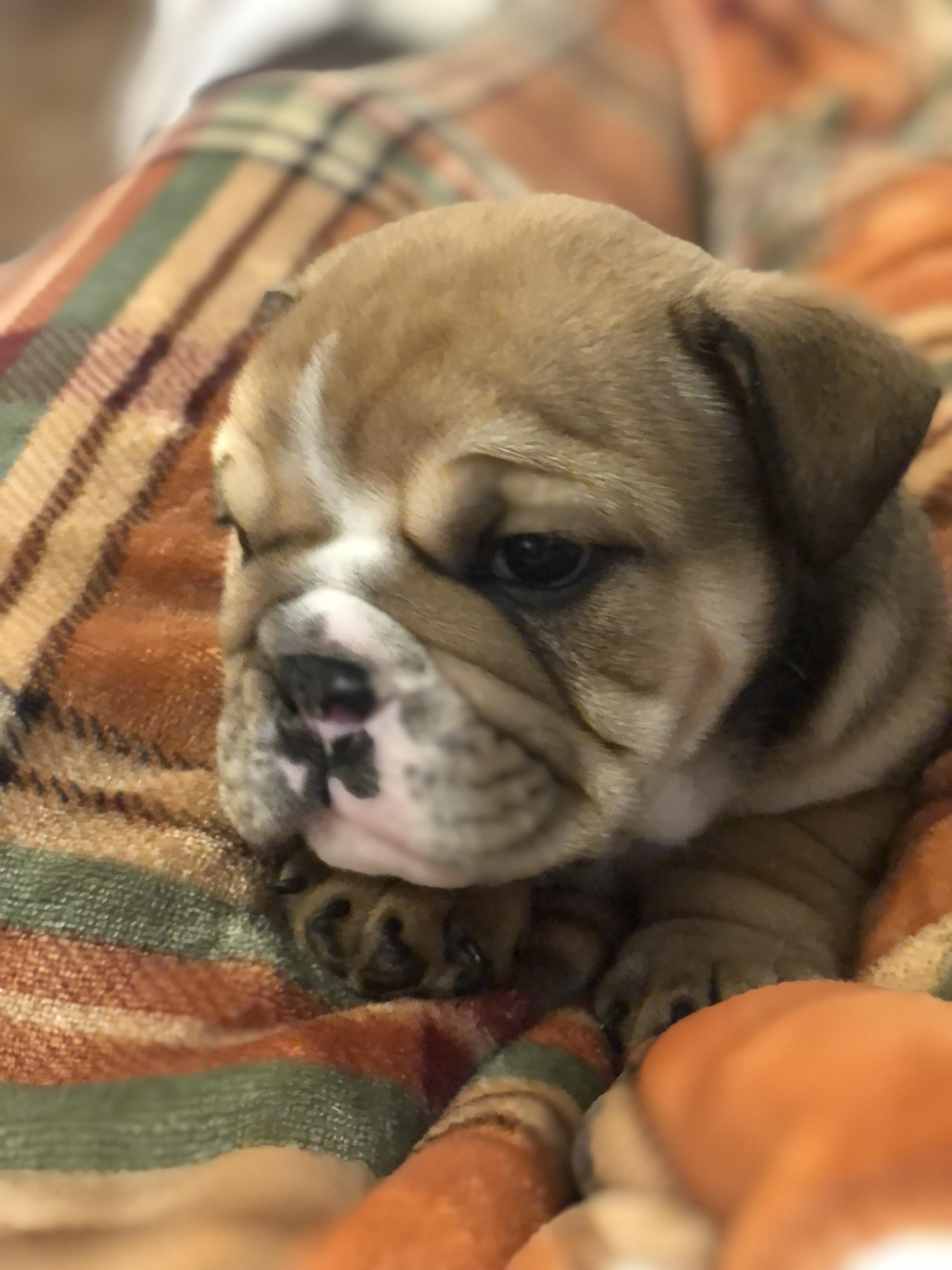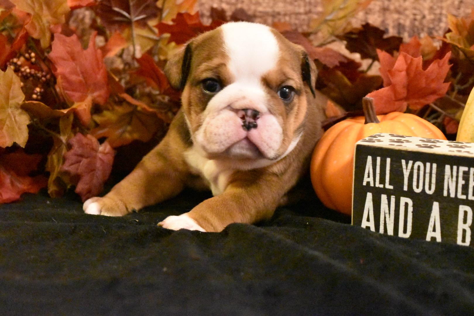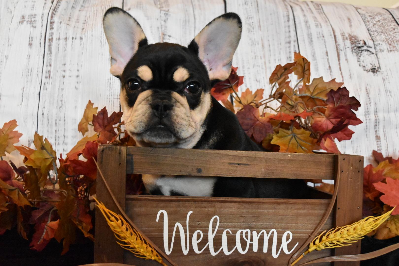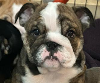 Our Bulldog puppies include lilac tri-color, chocolate tri-color, blue tri-color, black tri-color, fawn, red and white, and brindle. French Bulldog puppies include fawn and white, tricolors, and black and tan. Colors will vary depending on the parent dogs.