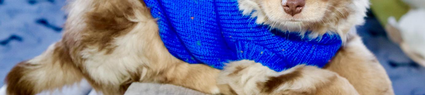 Our Miniature Australian Shepherd puppies include blue merle, black tri, red tri, and red merle. Golden Retriever puppies are dark golden. Colors will vary depending on the parent dogs.